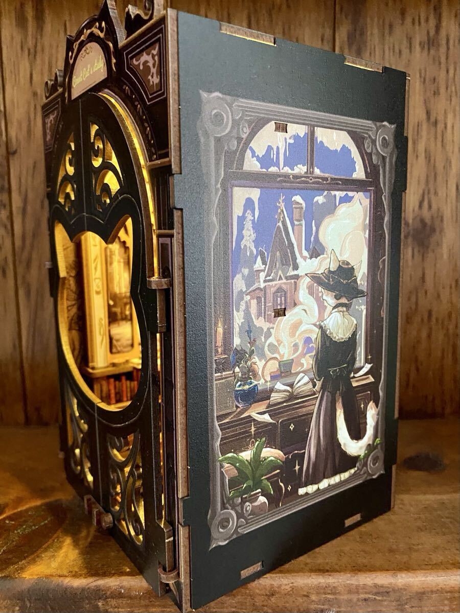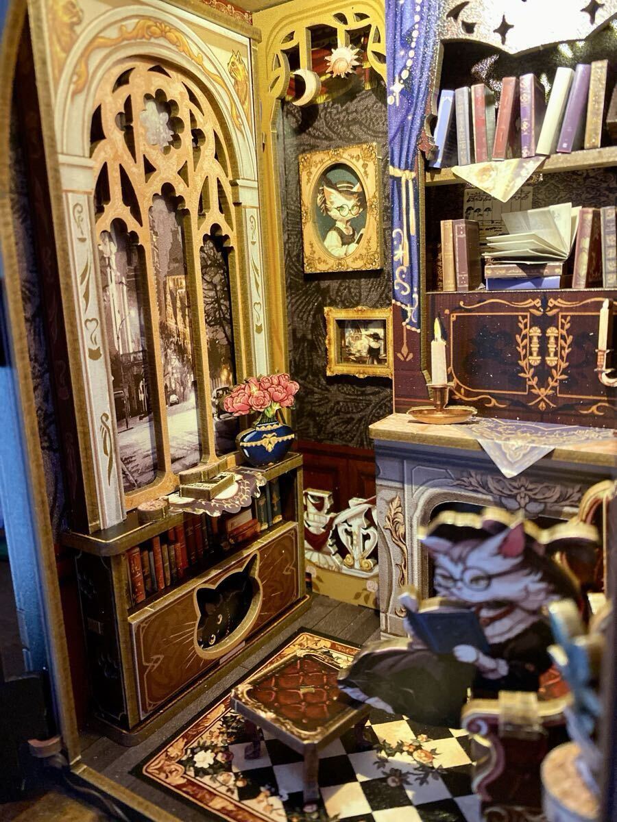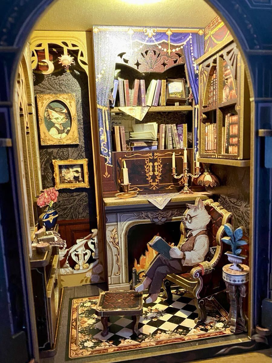 ドールハウス完成品 猫の部屋 書斎 照明つき