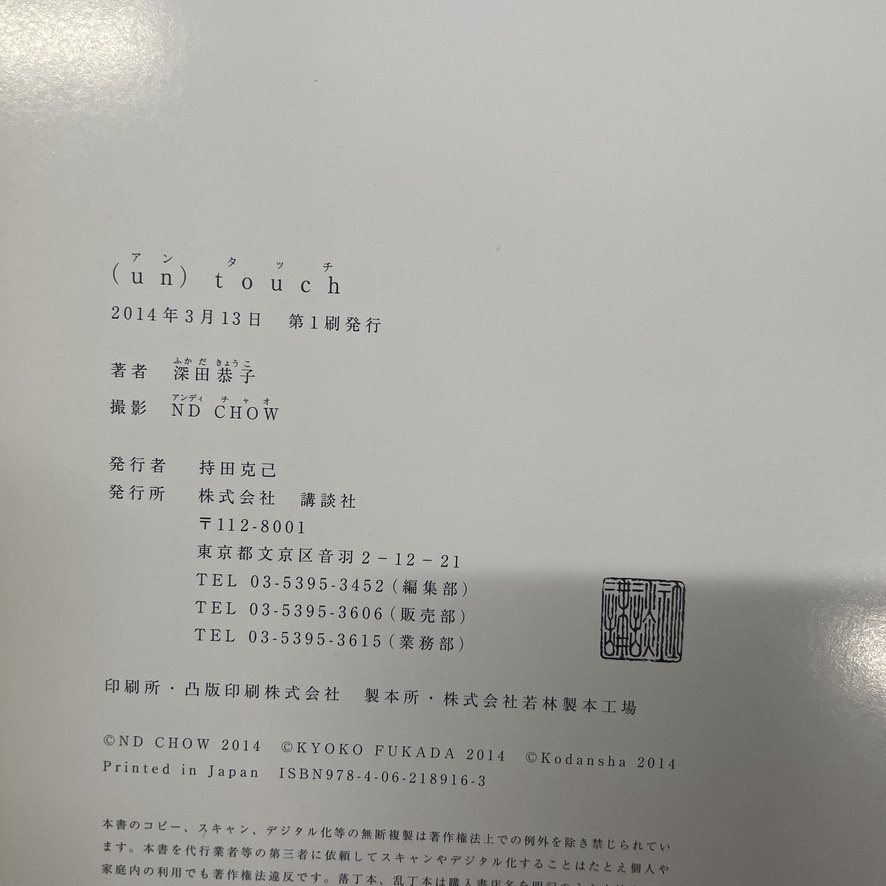 深田恭子 写真集(un) touch 2014年3月13日 第1刷発行 /識別番号Q
