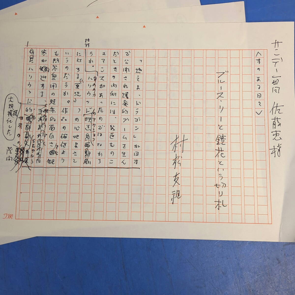 村松友視肉筆原稿『ブルース・リーと鏡花という切り札〈本のある日々〉』5枚完 サンデー毎日《真作》kankando