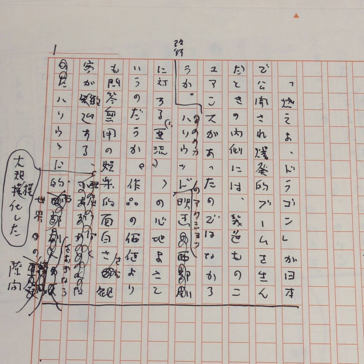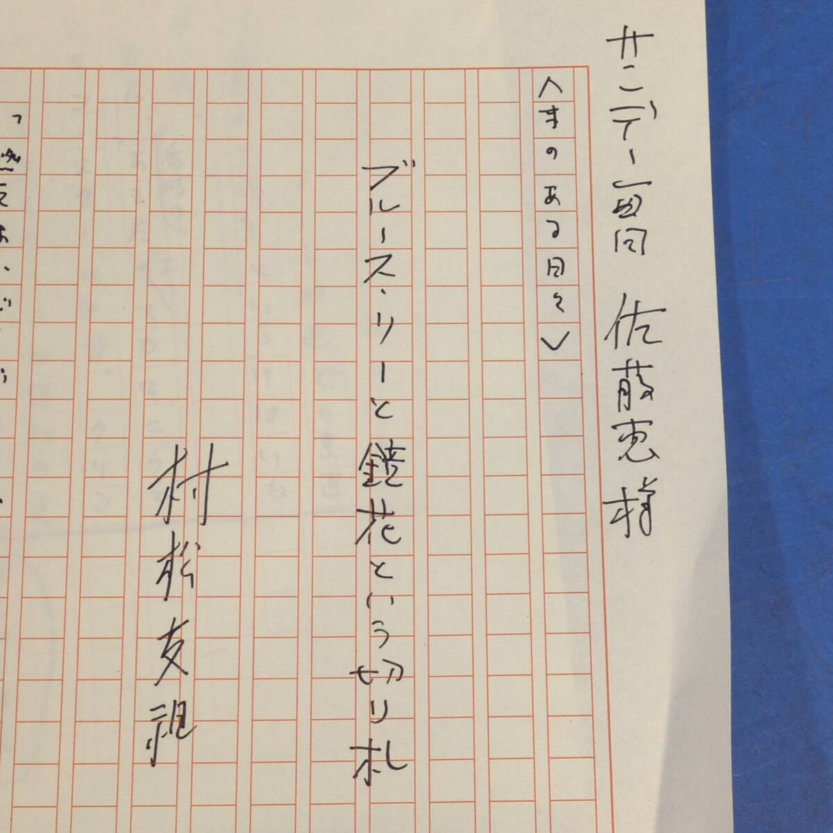 村松友視肉筆原稿『ブルース・リーと鏡花という切り札〈本のある日々〉』5枚完 サンデー毎日《真作》