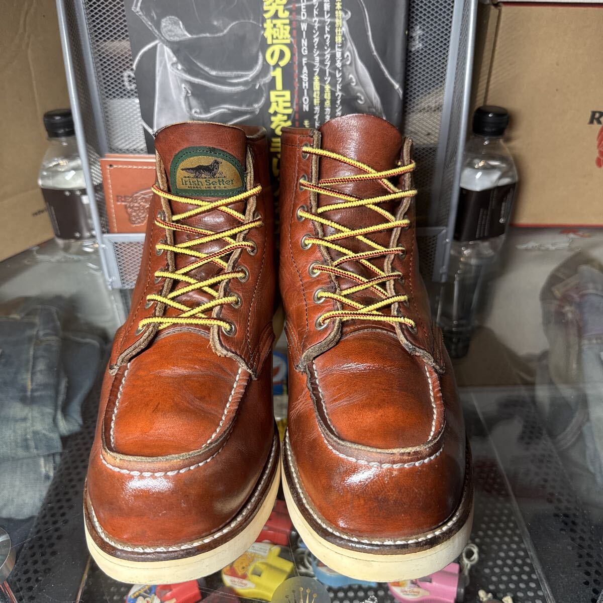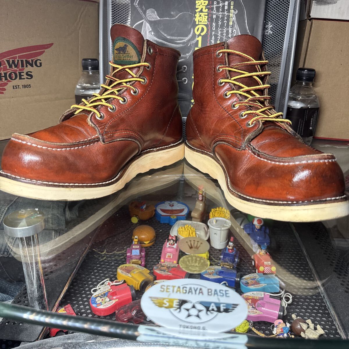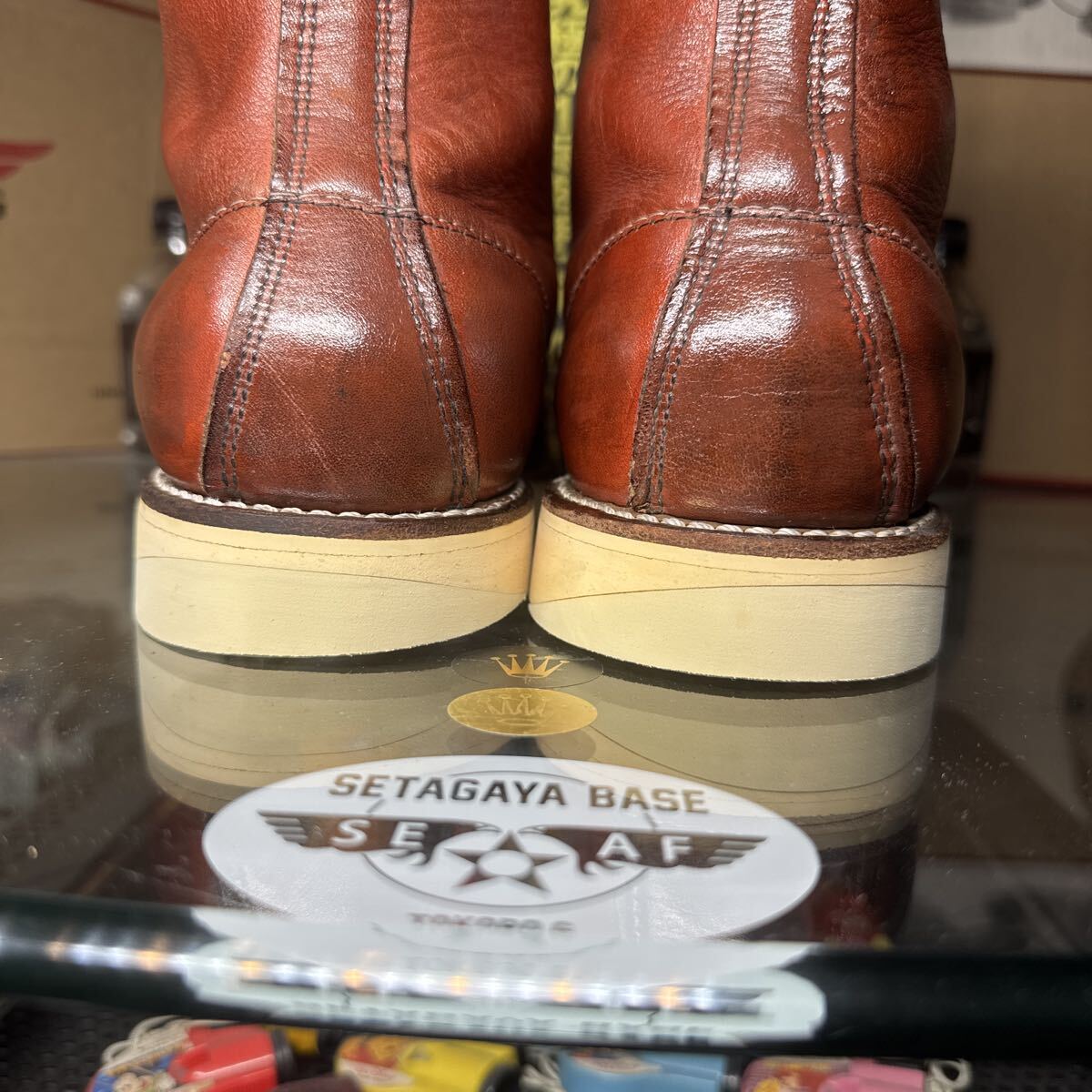 1994年製!レッドウイング875 8E 約26.5㎝ 半円犬タグ 赤茶オロラセット モックトゥ ヴィンテージ古董商品,有可能客製化、修改、換過零件,請下標錢注意。 オイルアップ洗浄除菌仕上済!の出品です。 当商品は非常に人気のある90'sに生産された、独特の赤茶色が特徴のレッドウィング です。しかも右足タンの表に半円角犬タグが刺繍された超生産量の少ないモデルになります。 サイズも8インチで、Eワイズとなりますので幅広い足の形をしがちな日本人の足に馴染み易いとの認識です! 落札者さまに気持ちよく使っていただけるよう丸洗いし、慎重に乾燥させながら丁寧に除菌、オイルアップしたモノになりますので、気持ちよくすぐ履いて頂けます。 またこの年代にありがちなインソールの致命的なひび割れも、手を入れて確認する限り確認出来ませんので、当たりの商品かと思われます。 ただ、30年程前の商品ですので、ヴィンテージ古董商品,有可能客製化、修改、換過零件,請下標錢注意。 品にご理解のある方に落札頂きたいです。また元箱がありませんので、何か他の箱に梱包して発送予定です。 また、純正ソールのかかとの片減りがキツかったので、地元の信頼出来る靴職人さんに5,000円程お支払いし直して頂いていますので、履いて頂いた際の歪みや違和感は相当解消され、このまま気持ち良く履いて頂ける個体との認識です。 以上の説明と写真からご理解頂いたうえ、トラブル防止の為如何なる場合もノークレーム、ノーリターンで入札の程お願いします。 他にも色々な靴を出品しておりますので、良かったら是非見てやって下さい!! >