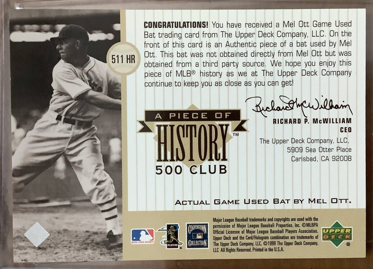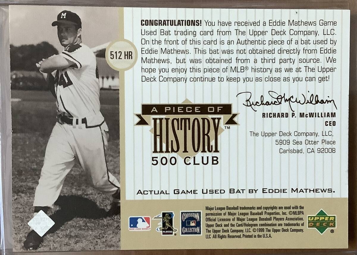 1999年 Upper Deck のインサートカード A Piece of History から、
