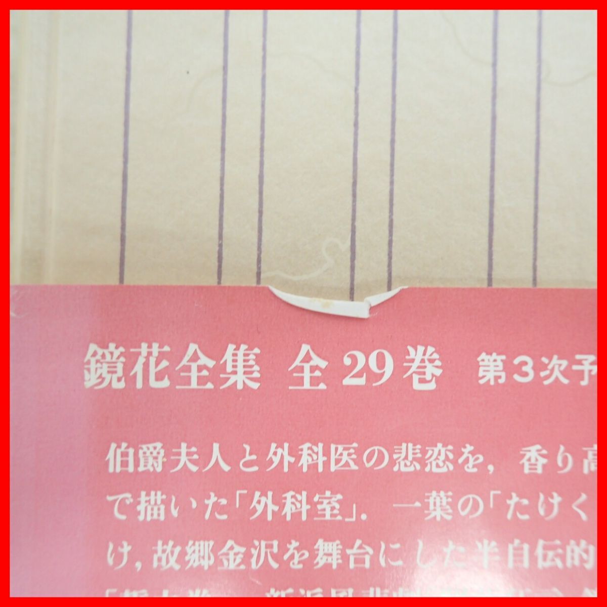 | 鏡花全集 全28巻+別巻+月報 全30冊 1986〜1989年発行 岩波書店 函入 泉鏡太郎 ■函にヤケ、シミ、汚れ、スレ等があります。 ■書籍にヤケ、シミ、汚れ等があります。 ■一、二、巻帯に破れがあります。 ■十三巻函内側に汚れがあります。 ■写真のものが全てです。付属物の有無や状態については写真からご判断ください。 ■チェックに使用したモニターや機器等は、特に表記がないかぎりは付属いたしません。 ■古いものですので、当方のチェック時に動作を確認できたものでも、必ずしも商品到着後にも同じように動作することを保証するものではありません。 ■動作確認済み品で、一部のソフトだけが動かない場合など、ソフトと本体の相性による問題については当方の責任の範囲外となりますのであらかじめご了承ください。 ■中古品となりますのでソフトや本体等のメモリー、バックアップ電池等については動作を保証いたしかねます。 ■商品によりますが、発売されてから10年以上経過している中古品であることをご理解いただいた上でご入札をお願いいたします。なお、新品や美品、そのほか特記事項がある場合は別途明記します。 ■ご落札いただいた本体及び箱や取説、付属品、梱包材などは1つでも廃棄や破損をしないようにお願いいたします。 ■商品のご落札後、廃棄や破損をした場合、あるいは【修理や整備、カスタム、付属物の抜き取りやページの抜き取り/書込み等、ご落札者様の目的に応じて何らかの手が加えられた商品】に関しましては、問題があった場合でも対応や返金などの対処ができませんのでご注意ください。 |