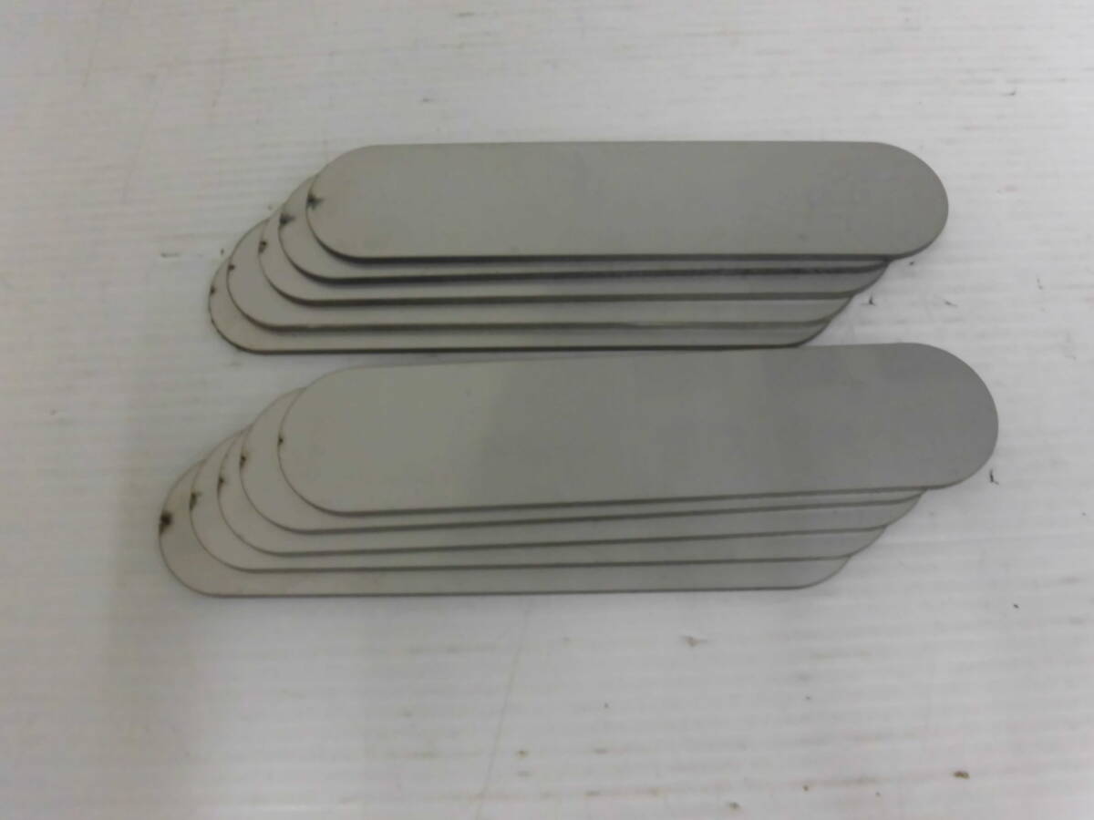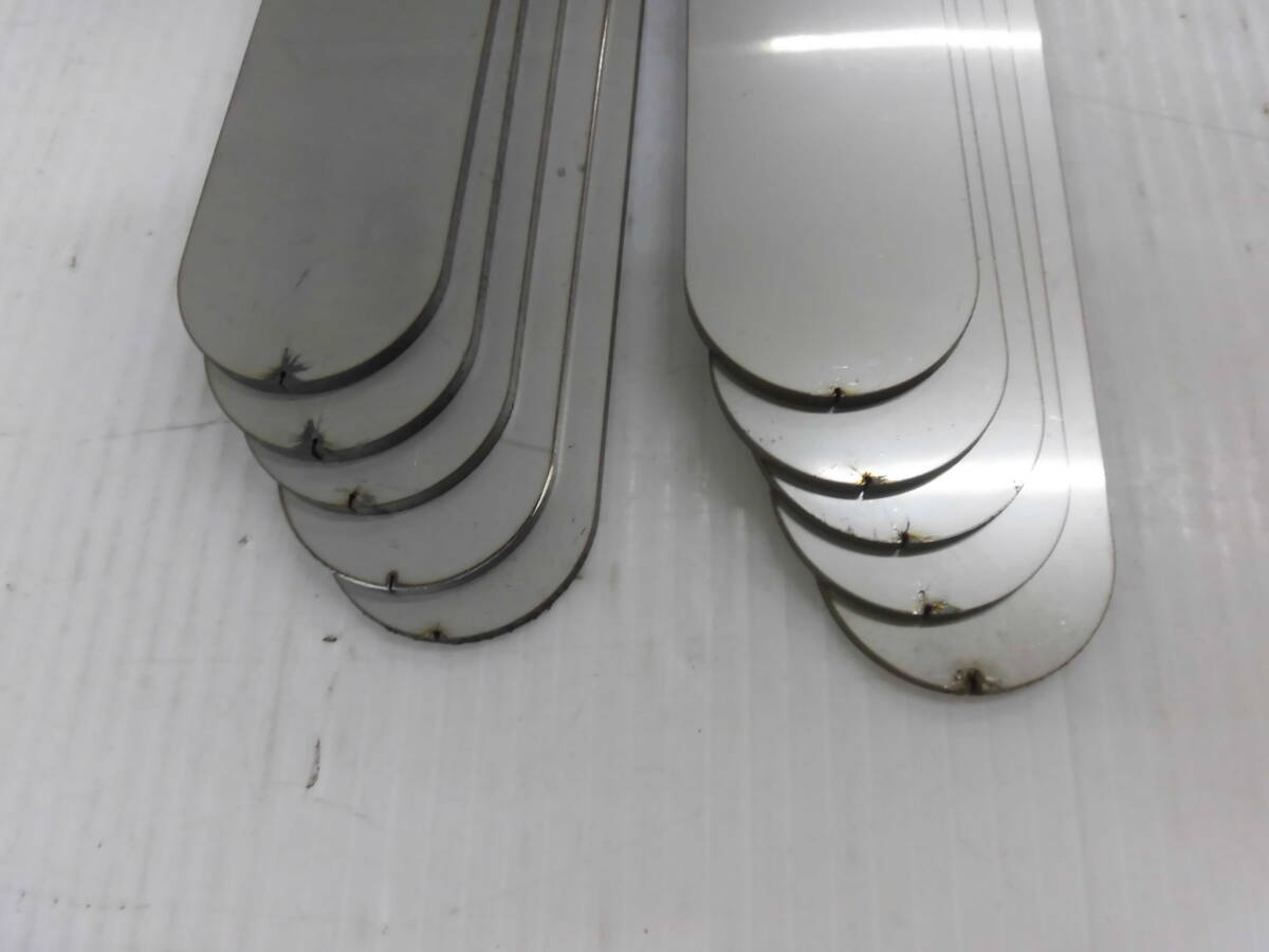 | 商品説明 | 材質 : ステンレス304 板厚 : 3mm サイズ : 約39㎜x約184mm 10枚 (一部切り込みがあります) 数量 : 10枚 重量 : 約1.6㌔(10枚) 実際の商品は、表示寸法より若干の誤差があります。 製品サイズ : ±2mm程度 角が欠けています。 裏にバリがあります。 切断面が黒くなっています。 サビが有ります。 | |