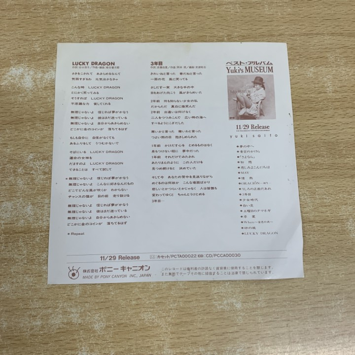 | 商品名稱 : | ●01)【1点限り!】【見本盤】斉藤由貴/Lucky Dragon/3年目/EPレコード/7インチ/国内盤/SSP-77/A |