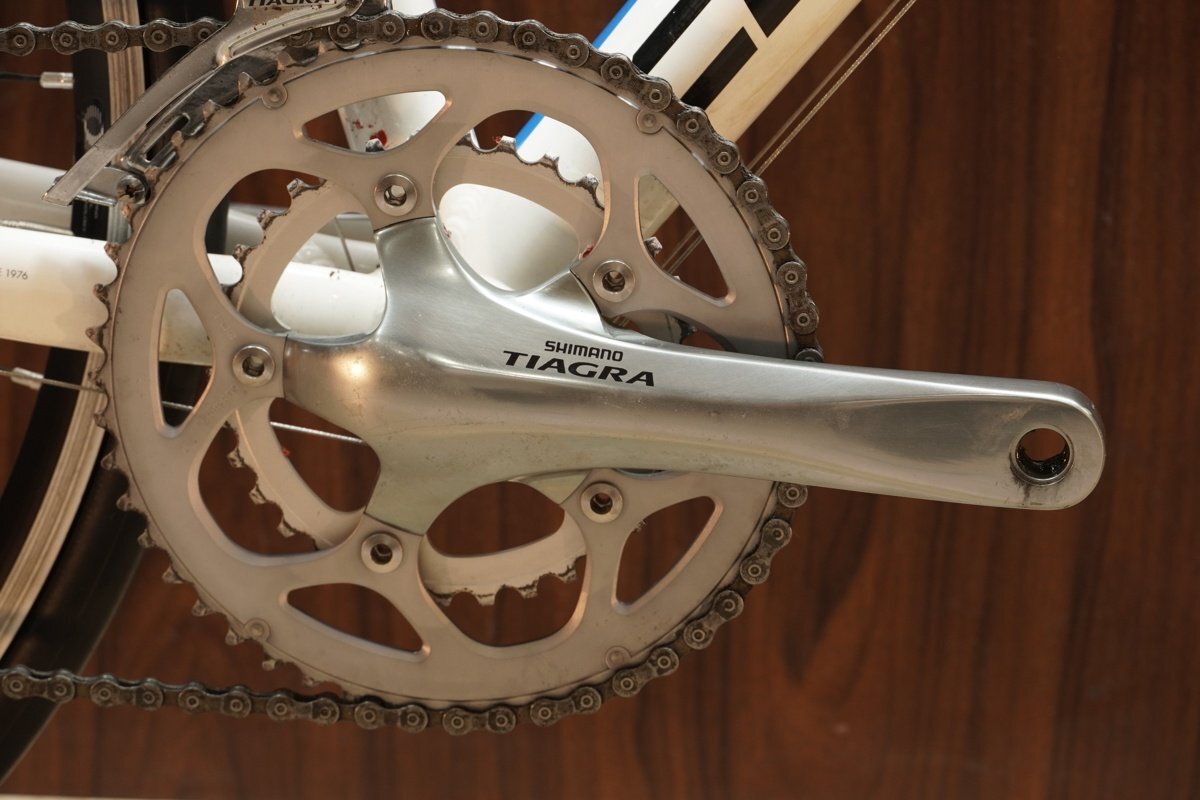 年式:2009年前後 フレーム:アルミ フォーク:カーボン メインコンポ:SHIMANO Tiagra 4500 2X9S クランク:SHIMANO Tiagra FC 4550 165mm 50T:34T ホイール:SHIMANO WH R501 タイヤ:700X23 スプロケット:12T:25T ハンドル幅:400mm ステム長:70mm サイズ:520相当 トップチューブ長(C-C):530mm (※ホリゾンタル換算値) シートチューブ長(C-T):470mm 適応身長:165cm~175cm程度 実測重量:8.95kg ※掲載画像状態 |