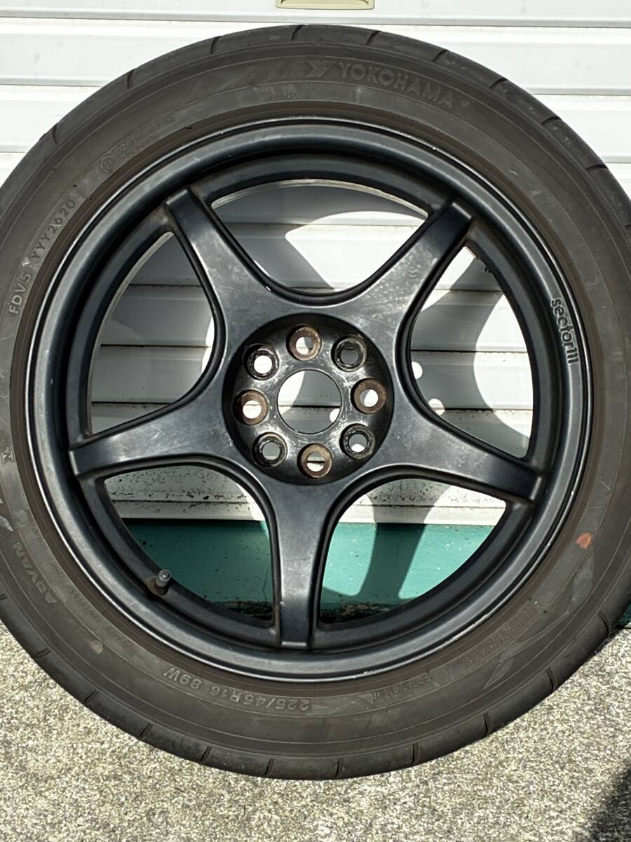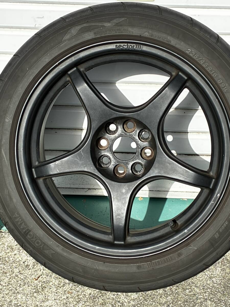 ホイール本体 4 本 ※ ボルト/ナット、センターキャップ、ハブリング等は付属しません(画像に写る物のみが全て) タイヤ 195/50R15 AD09 22 年製18 週2 本 残溝5mm タイヤ 225/45R17 AD08R 20 年20 週製2 本 残溝2mm