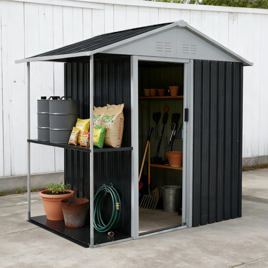 Product Name: 【収納ラック付き】物置 屋外 スチール 倉庫 戸外収納庫 W193*D130*H189cm 物置き おしゃれ 大型 収納庫 屋外物置 防さび ベランダ 防水 ドア スチール物置 屋外収納 ガーデニング 庭 新作【ブラック】