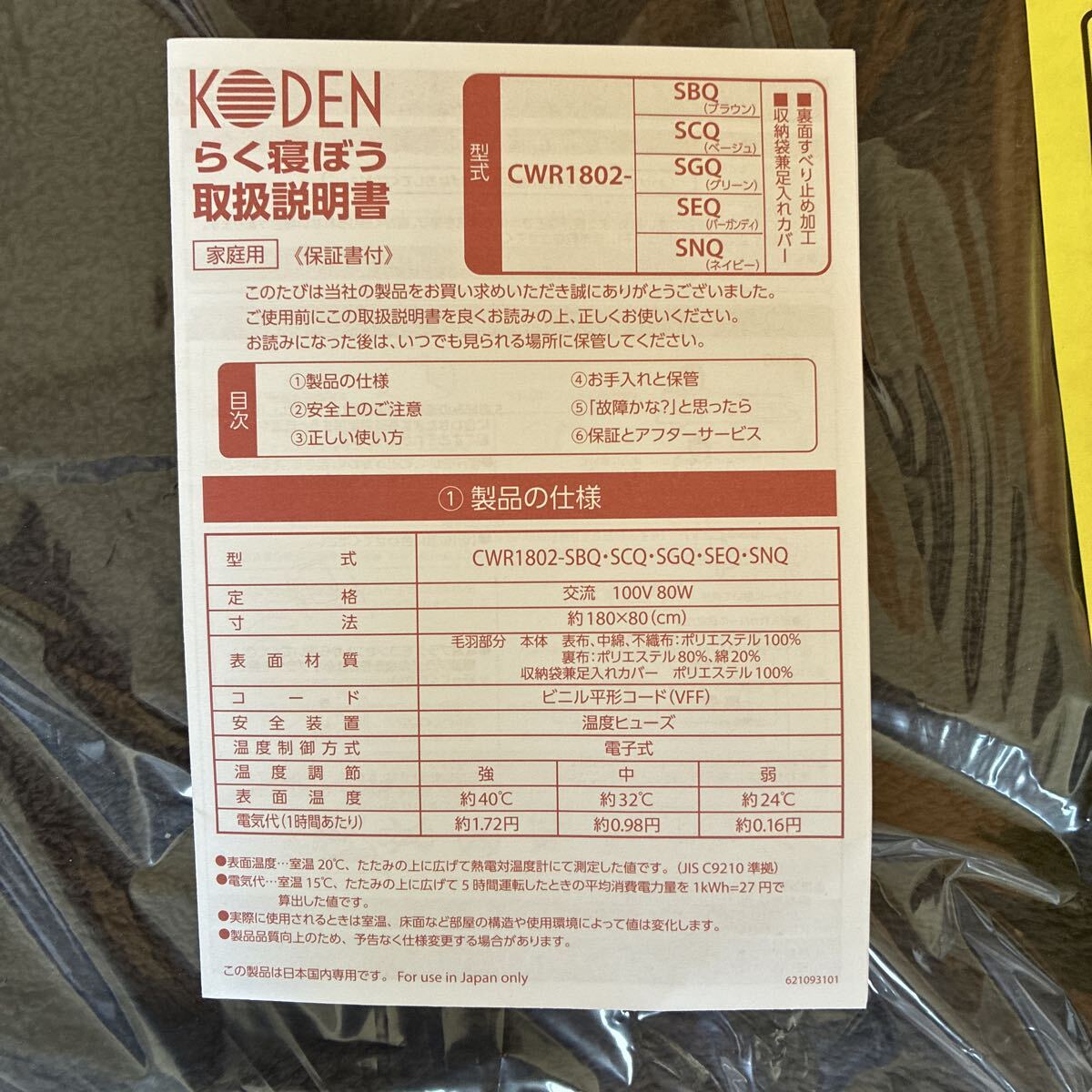 | 商品名稱 : | 広電 (KODEN) ホットマット らく寝ぼう ブラウン 180×80cm ロング 足入れ袋付 CWR1802-SBQ |
