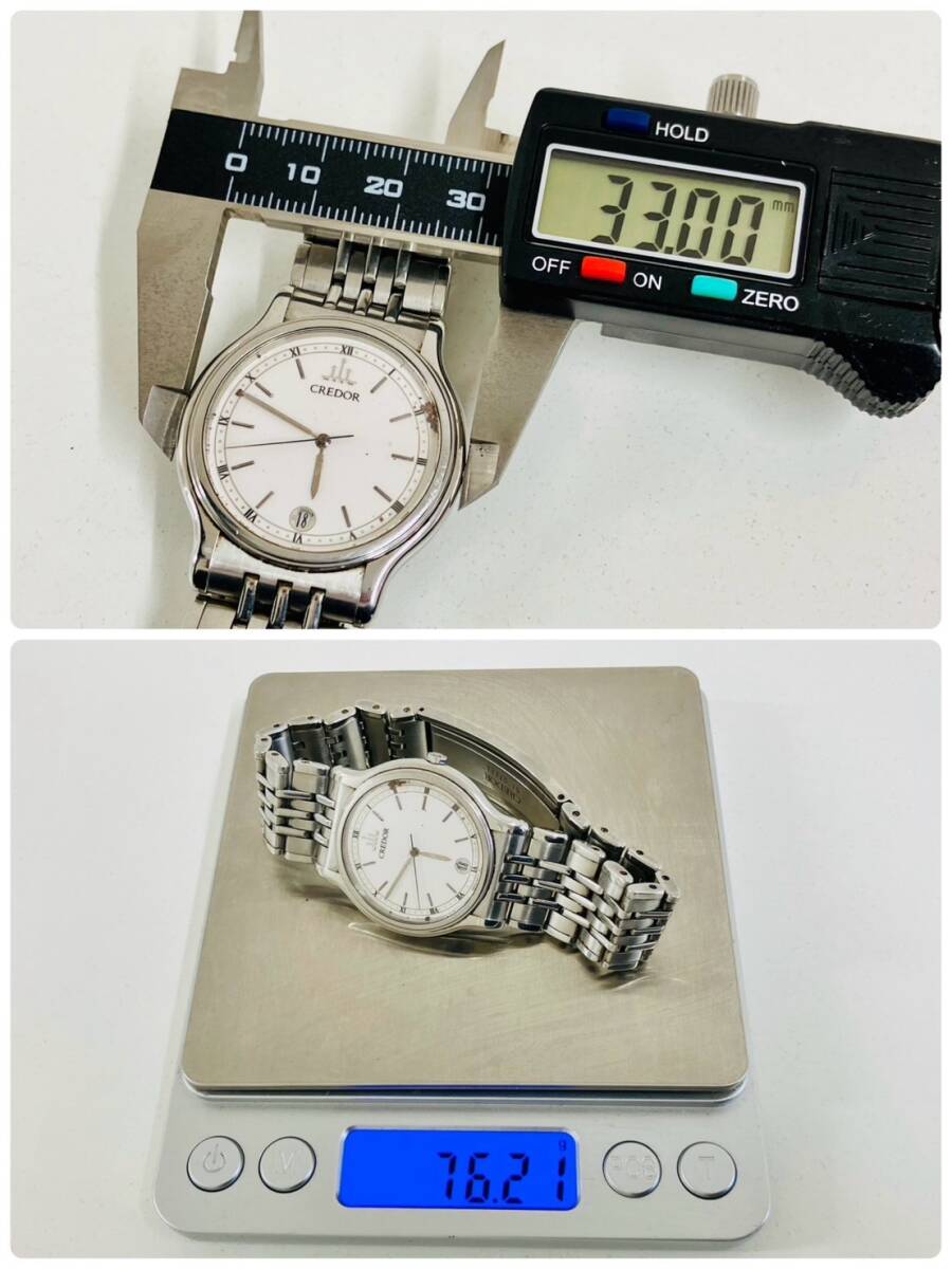 【ブランド】 セイコー/SEIKO (HATTORI SEIKO) 【モデル名】 クレドール/CREDOR 【型番/製造番号】 9572-6000 / 942729 【カラー】 文字盤:ホワイト系 ベルト:シルバー系 【付属品】 ー 【 サイズ(約)】ケース直径:33mm(リューズ含まず) 腕周り内周:18cm 総重量:約76.2g 【仕様】 駆動方式:クォーツ 写真にあるものが全てです。 現状品故障品、問題商品、可能無法修理,請注意 での出品となります。ヴィンテージ古董商品,有可能客製化、修改、換過零件,請下標錢注意。 品になりますので、年代物のコンディションであることをご理解お願い致します。全体的に細かいキズ等が見受けられますが、風防には爪に引っかかるような傷は見受けられません。 その他、商品状態やコンディションなどの詳細は掲載写真にてご確認ください。 中古商品やヴィンテージ古董商品,有可能客製化、修改、換過零件,請下標錢注意。 商品にご理解のある方、画像から判断できる方のご入札をおすすめ致します。 記載されていない汚れや臭いなどがあるかもしれませんが、 あくまでも中古商品ですので 何卒ご理解いただいた上でご入札くださいますようお願いいたします。 【発送・お届けについて】 ・海外への発送はご利用いただけません。 ・センター留置・コンビニ受け取りなどはご利用いただけません。ご了承ください。 【落札後の流れ】 ・恐れ入りますが、落札後3日以内のご入金が可能な方のご入札をお願い致します。 【注意点】 ・こちらの商品はノークレームノーリターンでお願いいたします。 ・お使いのモニターによっては、掲載写真と実物のお色味に差が生じる場合がございます。 ・すべて中古品のため、神経質な方はご入札をご遠慮願います。 ・著しく悪い評価をお持ちの場合は、ご入札をご遠慮願います。 ご入札を確認した時点で、ご入札の取り消し処理をさせていただく場合がございます。