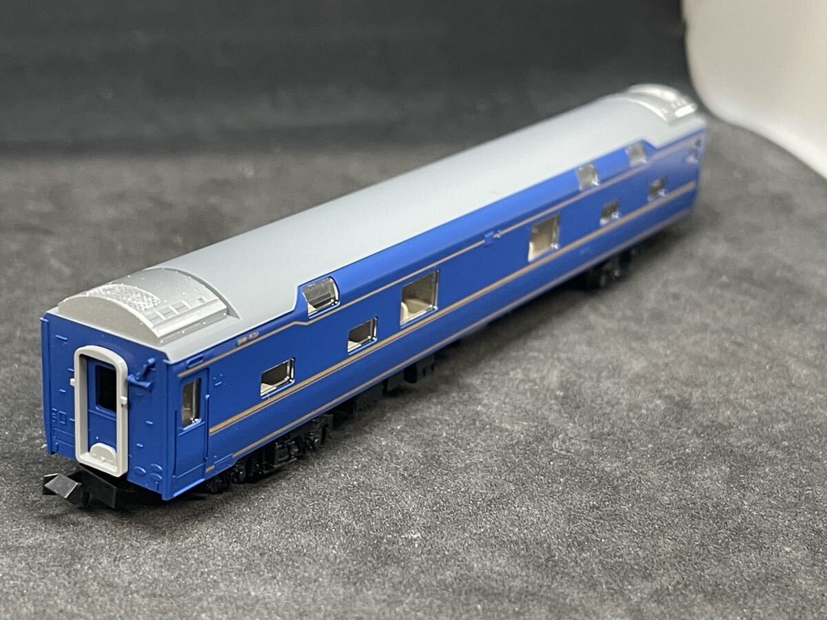 送料無料 中古 ばらし TOMIX トミックス 98871 JR 24系25形特急寝台客車(北斗星・混成編成)増結セット より オロハネ24 550 下廻り交換品 です。 TOMIXの24系北斗星のばらしです。 オロハネ24 550の1両のみの出品となります。 ボディは新品からのばらしとなりますが、下廻りは中古のさよなら北斗星の同一車のものとなります。 そのため台車が従来の新集電のものとなります。 ボディは新品からのばらしのため非常に綺麗な状態です。 車輪は中古品となりますが、比較的綺麗な状態です。 ケースや説明書は付属しません。 ネコポスにて送料当方負担で発送させていただきます。 鉄道模型の出品において線路、ジオラマが写っている場合は撮影用です。付属はしませんのでご注意下さい。 鉄道模型は精密機器かつ、手を加える方が多いため多数の注意事項がございます。 輸送による振動で一部部品が外れてしまう可能性があります。外れた部品をご自身で取り付け出来る方のみご入札をお願い致します。 動力車の動きはチェックしておりますが、年代やメーカーによって動き方が異なりますをご理解ください。また動力車を分解してのチェックは行っておりません。 中古購入品の場合動力の調整痕がある場合がございます。モーターを交換する方もいらっしゃいますので出品のモーターが純正品とは限りませんのでご了承ください。(特に初期のマイクロエース製品のモーターがTOMIX製に交換されているケースは多くございます。) ライトの点灯は走行させてのチェックではないため走行時にチラツキが発生する場合がございます。特に初期のマイクロエース製品や古い製品などは走行時にチラツキが発生する可能性が非常に高くなっております。 ライトユニットが交換する方が多いため純正品でない可能性があることをご了承ください。 鉄道模型の性質上一部部品が交換されているケースが非常に多くあります。当方で確認出来たものは記載させていただきますが、気付かない場合もありますのでご了承ください。 部品交換等が行われている可能性が高いものなどはジャンク故障品、問題商品、可能無法修理,請注意 品として出品する場合が多くなります。専門性が高い品のため知識のある方のご入札をお願い致します。 美品などの表記はボディの状態を基準に行なっております。美品と表記してあっても車輪に走行痕がある場合がございます。またケースは新品同様に綺麗な場合はほとんどございません。ケースは細かい傷や擦れなどが非常につきやすいものであることをご理解ください。 鉄道コレクションなど新品の状態から塗装の埃の巻き込みなどがあるケースがございます。 鉄道模型は1両単位で出品しているものなどはネコポスでの発送を可能とするためケースなしでの出品がほとんどとなっております。車両をプチプチで梱包した上でウレタンで保護して発送しております。 個人での出品となりますので、未使用との表記があってもあくまで中古品です。状態に関しましては出来る限り細かくチェックした上で出品しておりますが、見落としやチェック出来なかった場所がある可能性がありますのでご了承ください。不安な点がある場合はご質問ください。 中古品にご理解のある方のみご入札をお願い致します。誤発送などの場合には返品交換返金など誠意を持って対応させていただきますが、商品のイメージが思っていたものと違うなど落札者様のご都合による返品はお受け出来ませんのでご了承ください。 新品と表記しているものは新品購入後そのままの状態であるものですが、店舗購入品と異なり新品としてのメーカーの保証等が受けられない場合がございます。当方はストア出品ではございませんので完全な新品をお求めの方のご入札はお控えください。 美品と記載してあるものに関しましては個人の主観となります。多くの鉄道模型専門店やリサイクルショップなどを参考に表記させていただいておりますが、落札者様の主観と異なる場合がございます。美品ではなかった等での返品はお受け出来ませんのでご理解ください。 また、外箱などは流通の過程と個人での保管のため美品と表記してあった場合も箱は美品ではない場合がございます。ジャンク故障品、問題商品、可能無法修理,請注意 と記載してあるものに関しましては使用にあたって商品の知識を要する場合がございます。ジャンク故障品、問題商品、可能無法修理,請注意 品にご理解のない方のご入札はお控えください。 梱包は基本的に再利用させていただいております。梱包材に関してのお問い合わせ等はご遠慮ください。 定額出品においていたずらな値下げ交渉が相次いだため基本的に値下げ交渉は不可にて出品させていただいております。当方出品商品を大量にまとめてご購入を検討いただける場合は質問欄よりお尋ねください。 ヤマト運輸元払いヤフネコパックに限り送料無料で発送致します。その他の配送方法をご希望はお受け出来ません。発