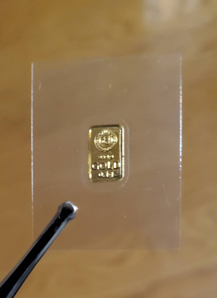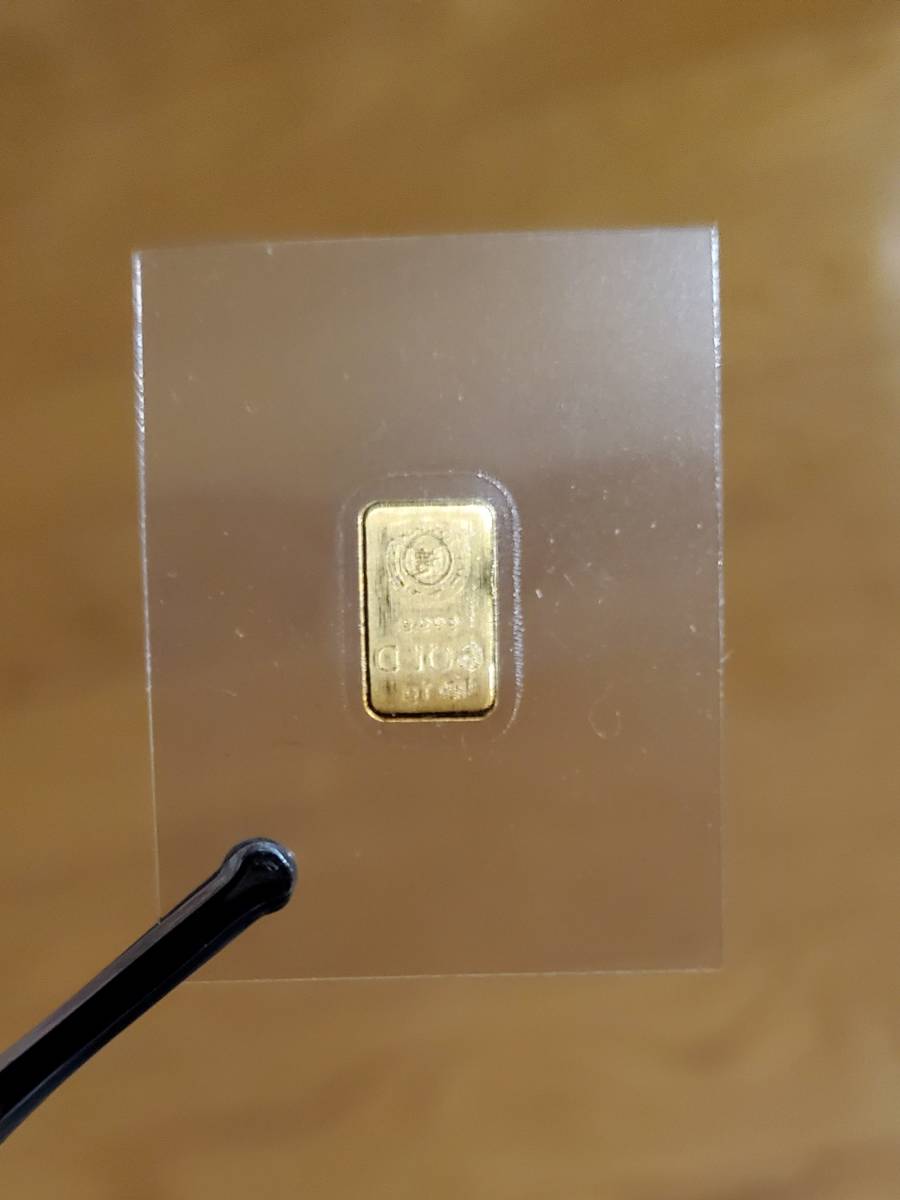 徳力本店製の純度999.9の純金24Kインゴット 0.1g です。