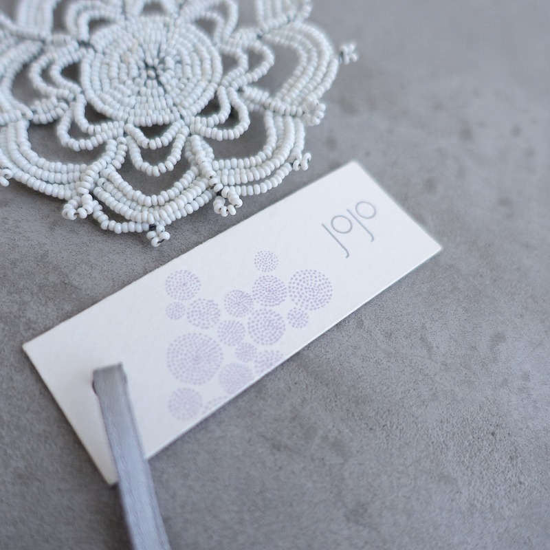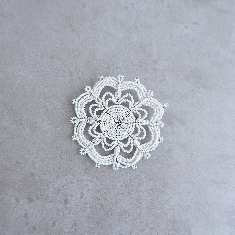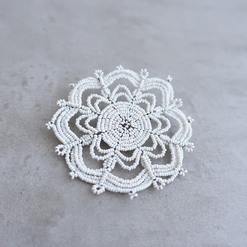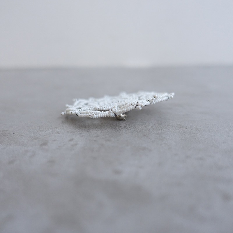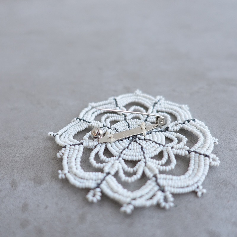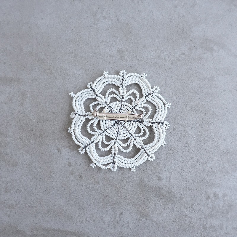 | jojoのkaleidoscope ブローチです。ホワイトの希少な極小ガラスビーズをワイヤーに通して作られています。一つ一つ手作業で制作されている特別感のあるアクセサリーです。定価(メーカー希望小売価格)20,900円のお品物です。 |
