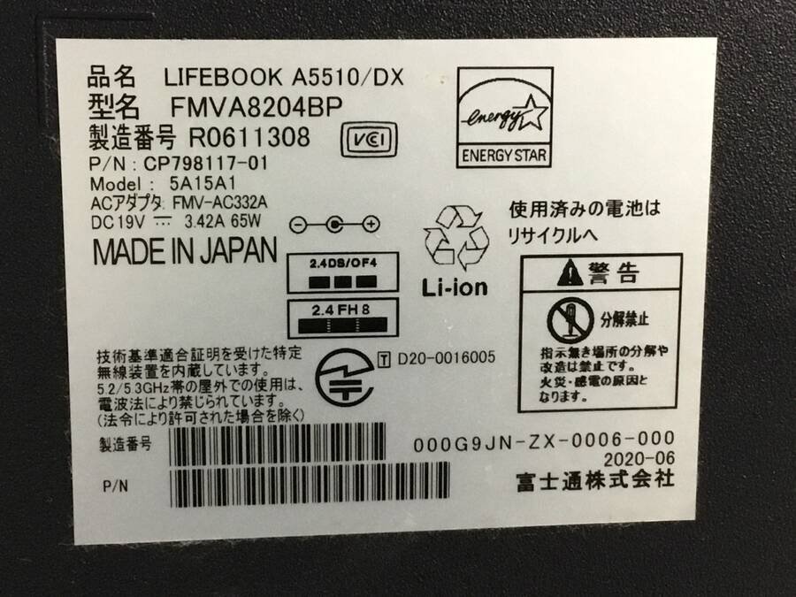 | 商品名稱 : | FUJITSU FMVA8204BP LIFEBOOK A5510/DX Core i5 10210U 1.60GHz■ジャンク品 |
