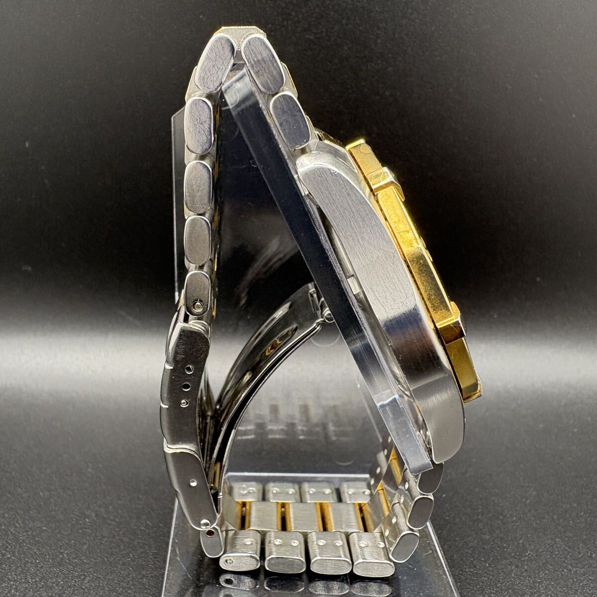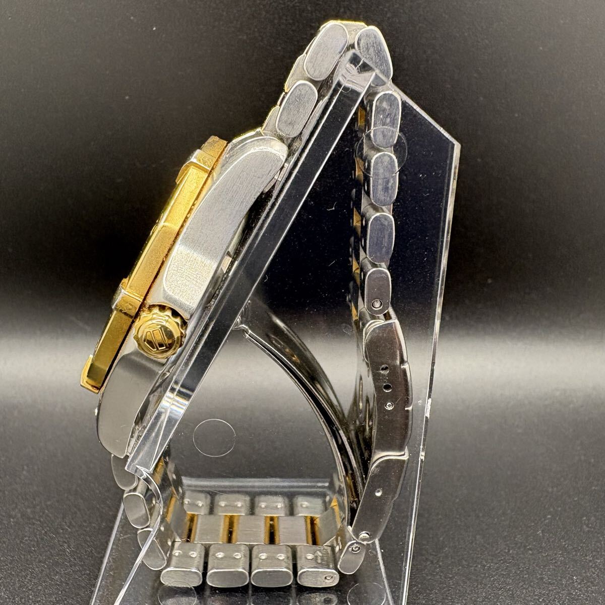 【コンディション】 現状稼働しております。 リューズ操作、ベゼルの回転確認済み。 中古品のため小傷や使用感ございます。 ※あくまで中古品、素人による簡易的な検品となります。 商品の状態は当方の主観によるもので、状態の感じ方には個人差がございます。 また中古品につき、使用に伴うキズ・汚れ・部品の欠損等がある場合もございます。 現状有姿となりますので状態については掲載画像を必ずご確認の上、ご自身でご判断頂きご入札をお願いいたします。 ご入札頂いた時点で上記内容をご理解頂いたものと判断いたしますので、その後の入札取消し、返品・返金等の対応はいたしかねます。 神経質な方や完璧をお求めの方はご入札をお控え下さい。 ※ 稼働品ではございますが、中古品につき電池残量や今後の動作・精度・防水性能を保証するものではございません。 不具合発生時の修理費用の負担等は一切お受けできませんので予めご了承下さい。 現状渡しにご理解頂ける方のみご入札下さいますようお願いいたします。 【サイズ 】 実寸 ケース横幅 :約40mm ケース厚 :約8mm ラグ幅 :約20mm 腕周り :画像をご確認ください ※素人採寸につき、多少の誤差はご了承下さい。 ※上記の通り採寸しておりますので、サイズ違い等の返品はご遠慮下さい。 【付属品】 時計本体 【カラー】 ゴールド×シルバー ※写真写りによって実物と多少見え方が違う場合もございます。 【発送】 お支払い確認後、1〜2日以内に発送予定です。 その他、ご不明点については必ず入札前にお問い合わせ下さい。 ※当方、時計に関する専門的な知識はございませんので、分かる範囲での回答となります。 入札後のお問い合わせ・入札取り消しはお受けできません。 ※イタズラ入札防止のため、恐れ入りますが過去の評価内容によっては入札を削除させて頂く場合がございます。 特に新規の方や「悪い評価」が多い方は質問欄より事前に購入意思をお伝え下さい。ご協力をお願いいたします。 【1_284】 >