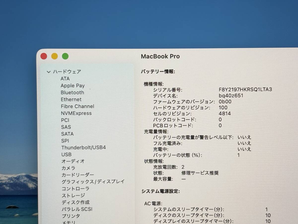 【メーカー】 ・Apple 【型番】 ・A2442 MacBook Pro(14-inch,2021) 【CPU】 ・Apple M1 Pro-10コア 【メモリ】 ・32GB 【SSD】 ・1TB 【商品状態】 ・macOS Tahoe インストール済 ・パスワードは0000に設定してあります。 ・※ほぼ未使用の状態かと思いますがバッテリー修理サービス推奨の表示が出ております。 (駆動にはACアダプターが必要です) 【外観】 ・目立つキズや汚れもなく綺麗な御品です。 【付属品】 ・本体・ACアダプター(model:A2166)・USBケーブル ・その他記載のないものは付属しません。 【送料区分】 ・ C サイズ(下記送料表の料金になります) | ||||||||||||||||||||||||||||||||||||||||||||||||||||||||||||||||||||||||||||||||||||||||||||||||||||||||||||||||||||||||