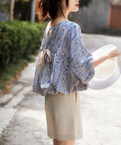 「LOPASS」 半袖ブラウス L ブルー レディース