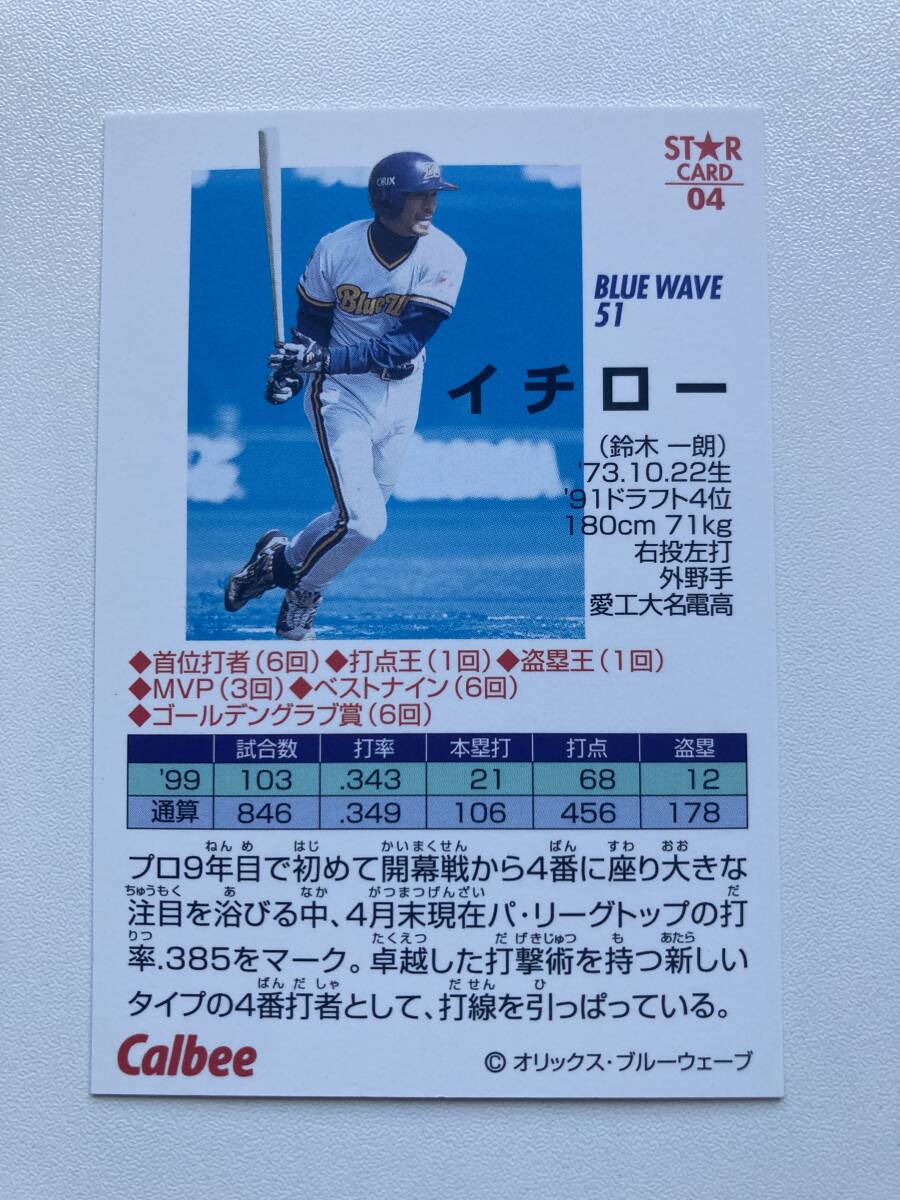 | 商品名稱 : | イチロー カルビープロ野球 2000年 S-04 オリックス インサートカード スターカード |