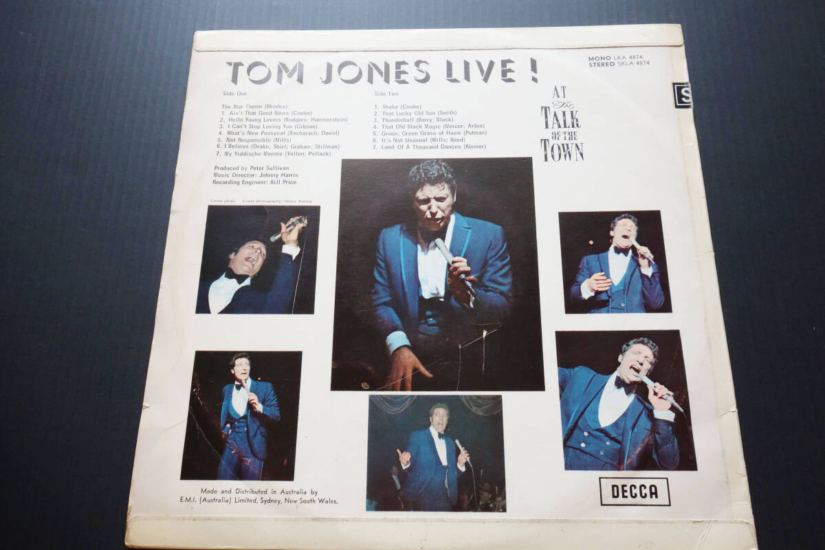 イギリスを代表するシンガー、トム・ジョーンズの1967年発表のLIVEアルバム。英DECCAレーベル、マトリクスA1/B1のUKオリジナル盤です。非常に良い録音で臨場感があり、トム・ジョーンズのボーカルを堪能できます。「It's Not Unusual」「Land Of A Thousand Dances」といった代表曲もしっかりおさえられています。