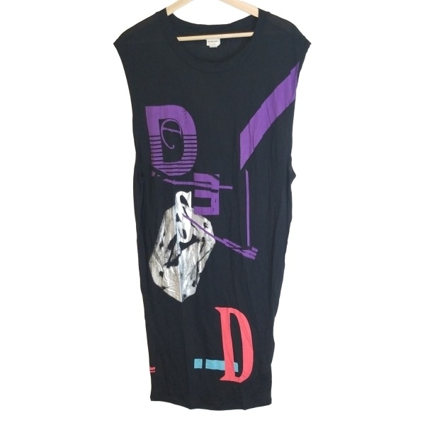ディーゼル DIESEL サイズXS - 黒×パープル×マルチ レディース 半袖/ひざ丈 美品 ワンピース