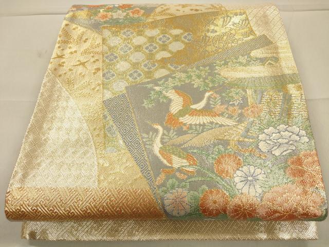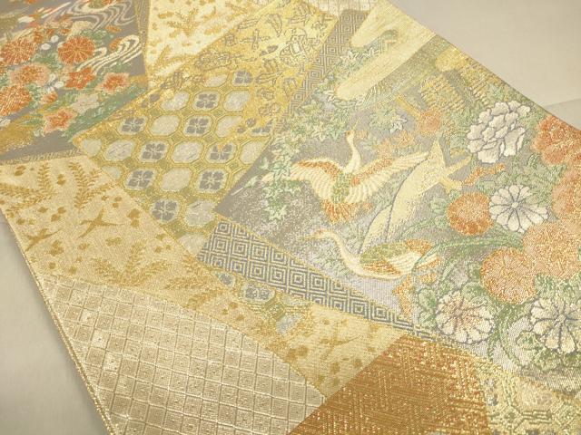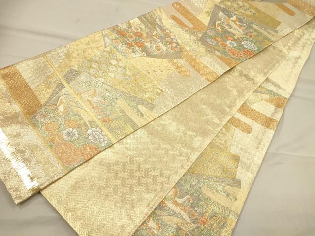 商品名稱 : 平和屋着物◎宝珠本佐賀錦 六通柄袋帯 色紙花鳥文 金銀糸 引箔 正絹 逸品 未使用 CAAR3679ft