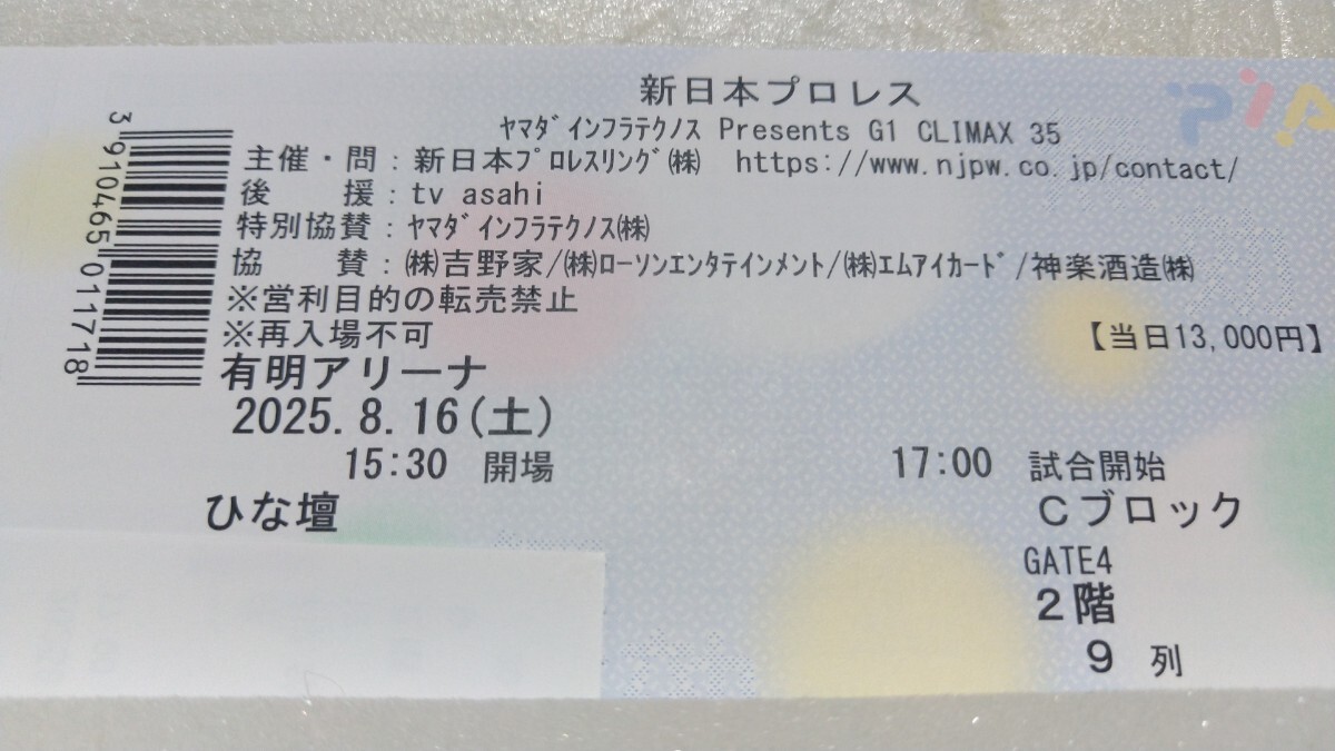 | 商品名稱 : | 説明必読 G1CLIMAX35 8月16日 有明アリーナ 新日本プロレス クライマックス チケット 券 |