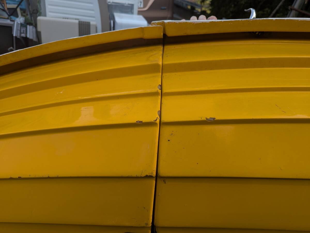 船底に傷がありますがFRPが割れているのではなく塗装が剥げているようです。