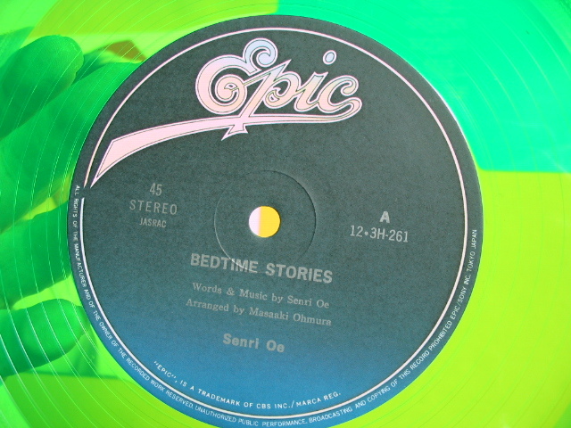 鮮30cmシングル. 45rpm. 大江千里. BEDTIME STORIES/EPIC . カラー盤。