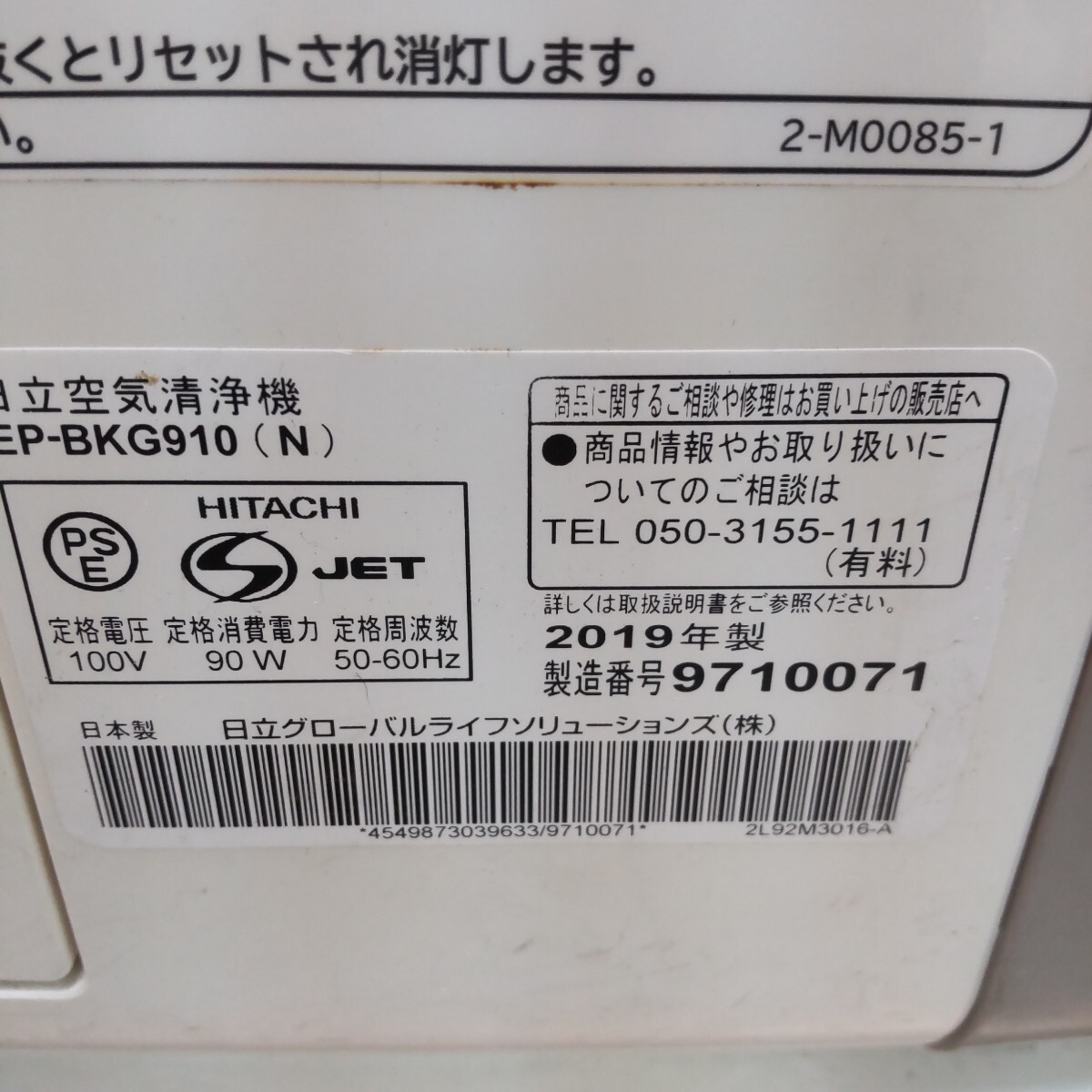 | 商品名稱 : | LKT-250828-89 HITACHI 日立 空気清浄機 EP-BKG910 空調 2019年製 加湿器 加湿空気清浄機 自動おそうじ 加湿 簡易動作確認済み |