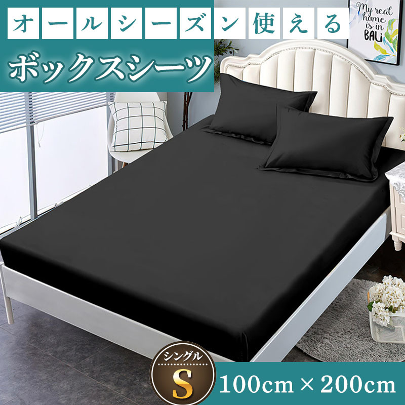 ボックスシーツ シングル シーツ マットレス ベッドシーツ ベッドカバー 敷き布団カバー 黒 ブラック 寝具 無地 オールシーズン 春夏秋冬