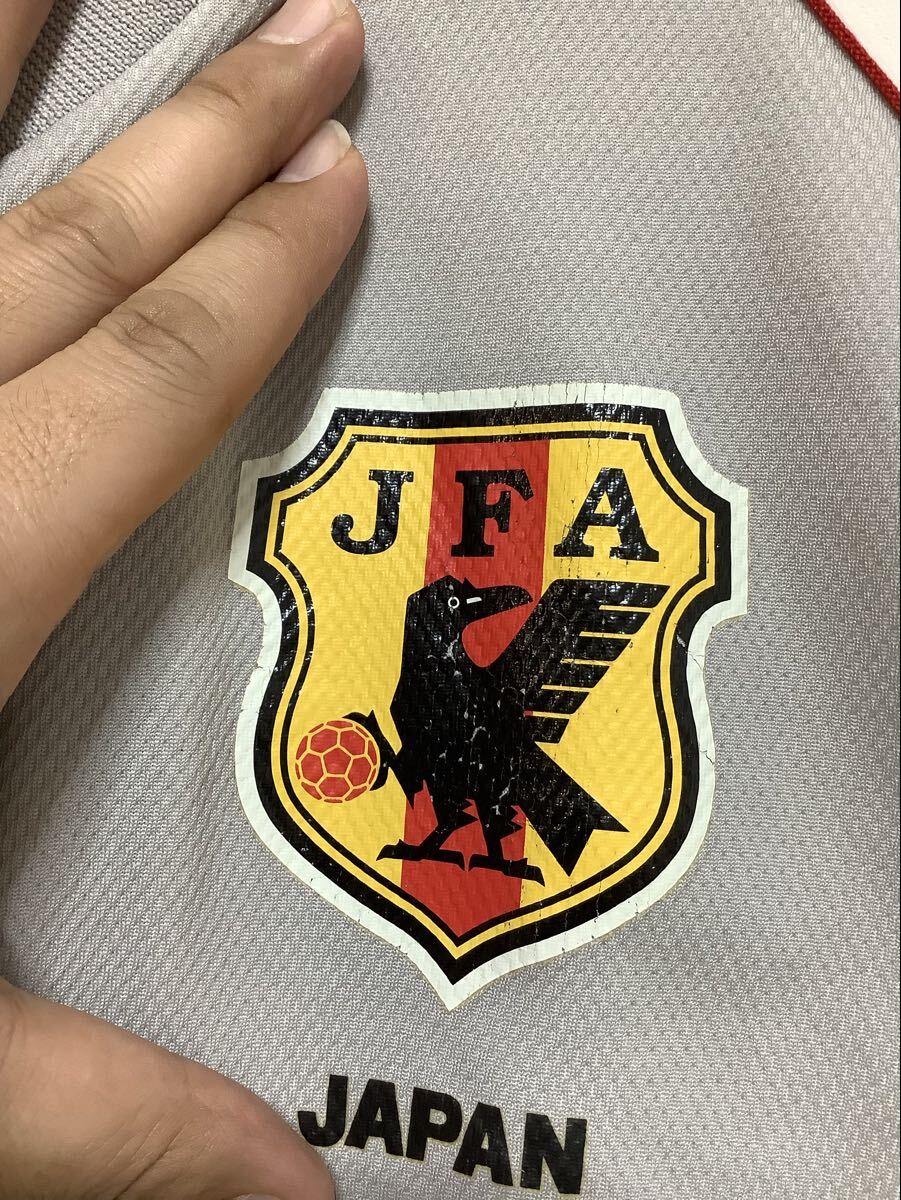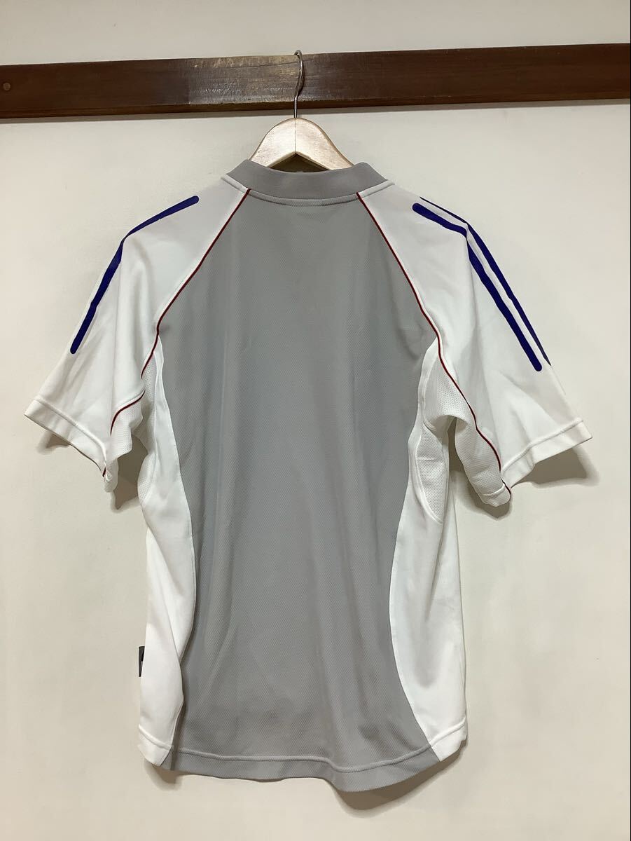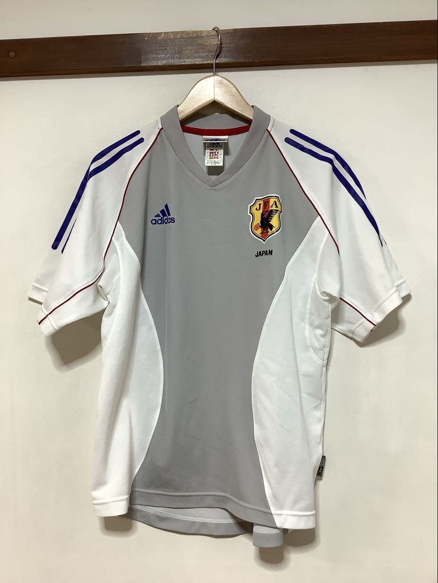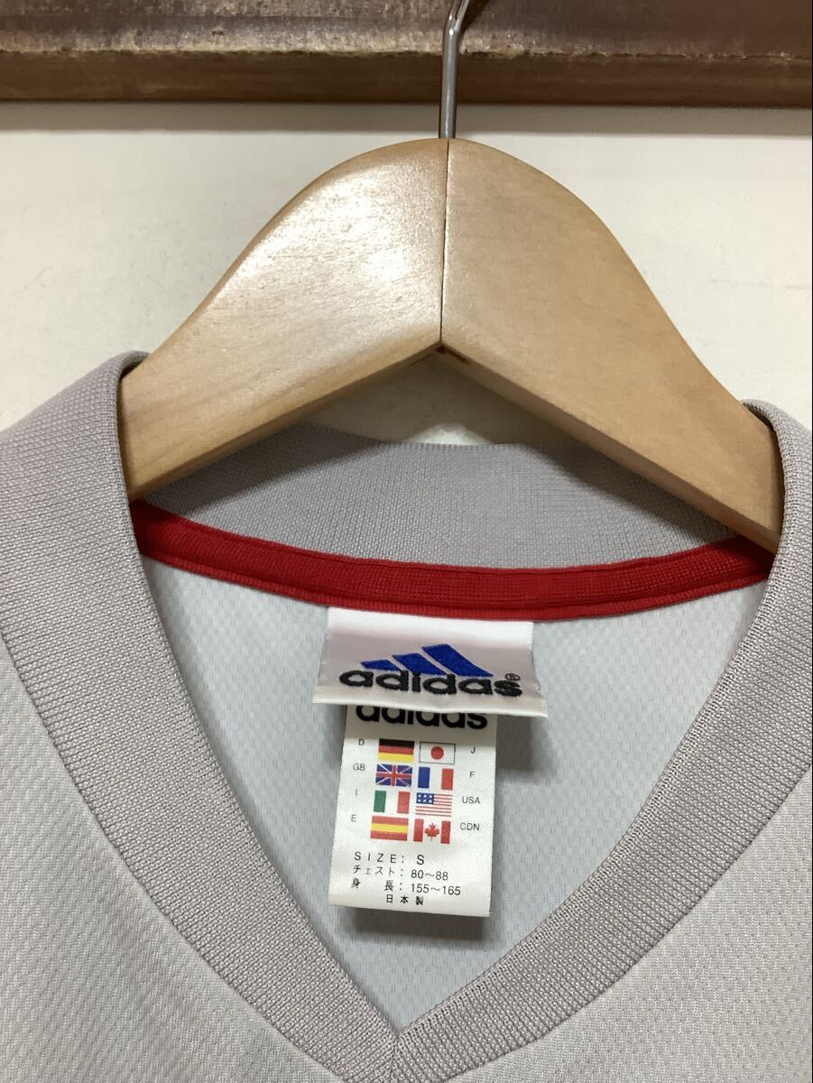 わ1676 サッカー日本代表 2002 adidas 半袖プラクティスシャツ S アウェイ グレー/ホワイト ロゴプリント サッカーシャツ 練習着 日本製
