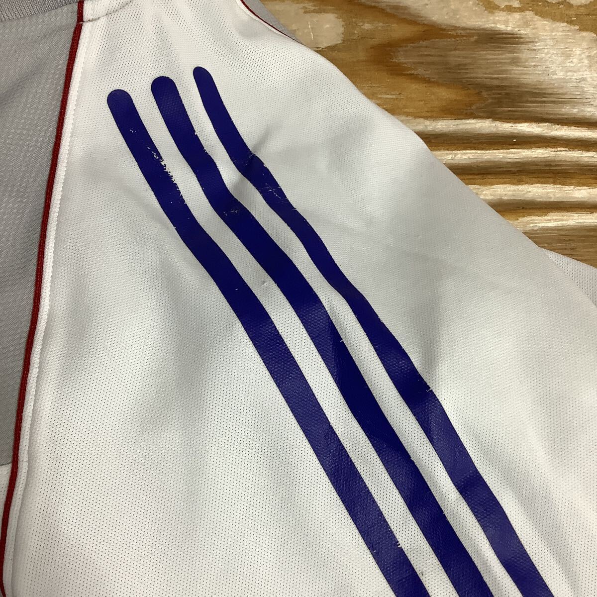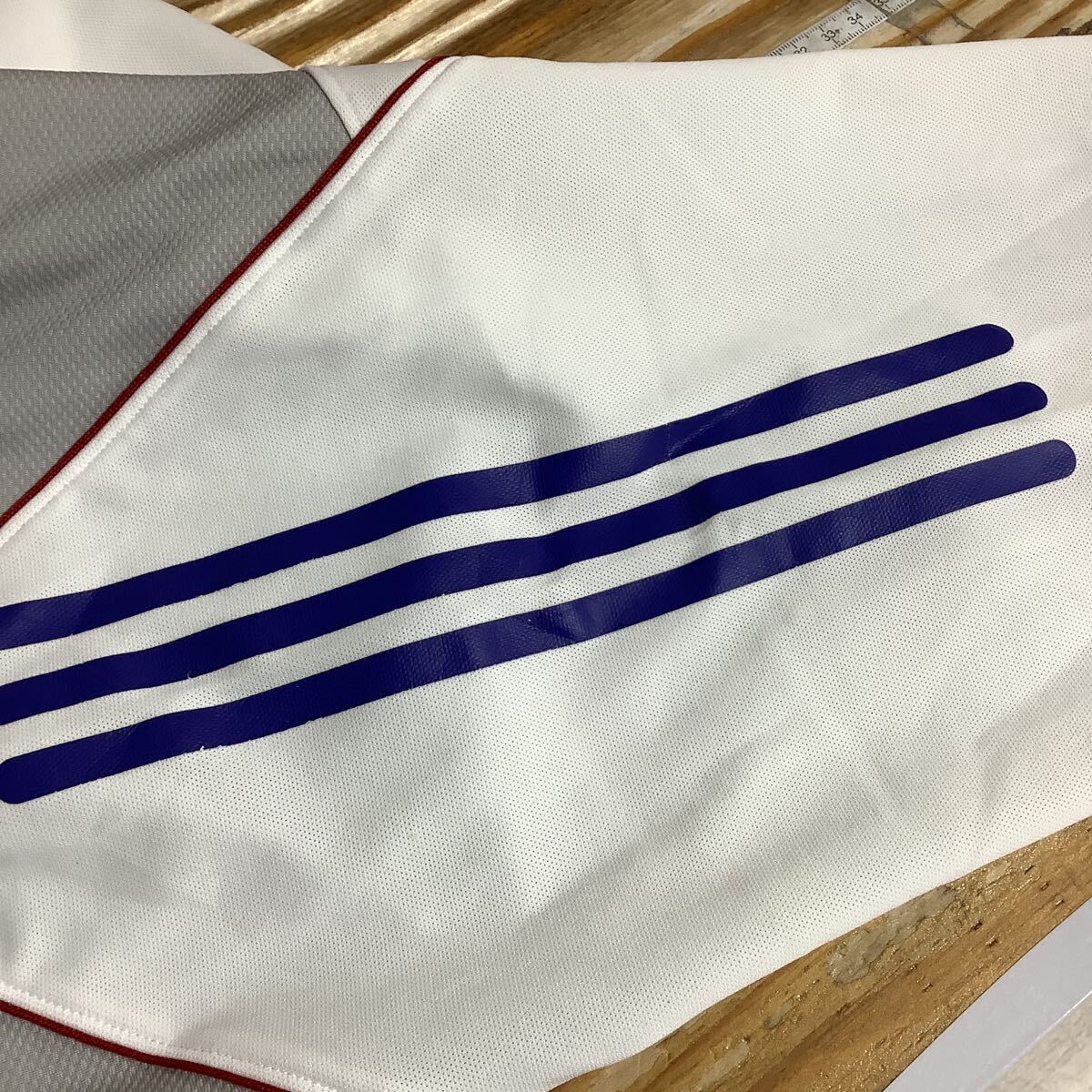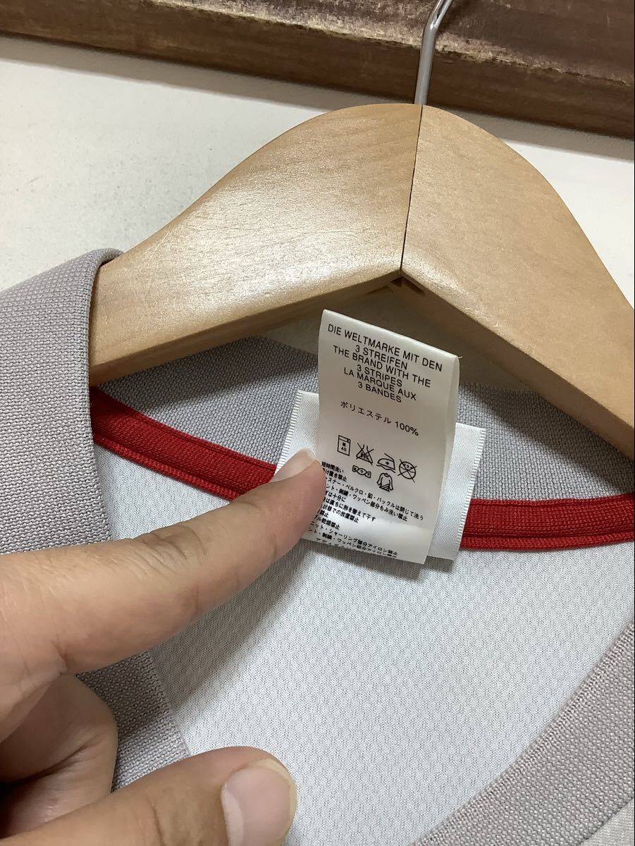 わ1676 サッカー日本代表 2002 adidas 半袖プラクティスシャツ S アウェイ グレー/ホワイト ロゴプリント サッカーシャツ 練習着 日本製