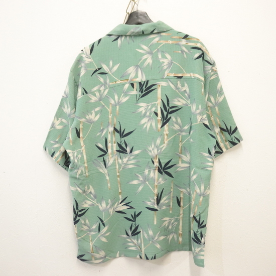 Z724 2000年代製 BananaCabana 半袖アロハシャツ■00s 表記Lサイズ グリーン シルク バンブー オープンカラー 開襟 古着 古着卸 オールド