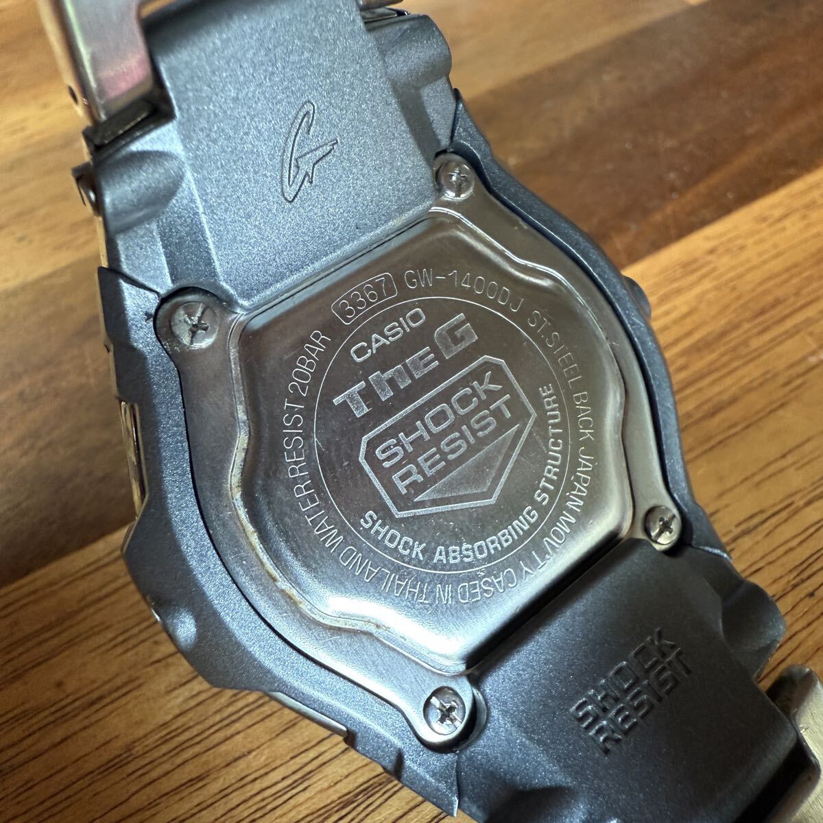 ステンレス仕様のGW-1400DJになります。ベーシックなモデルのGW-1400DJのダイヤルがブルーのモデルになります。