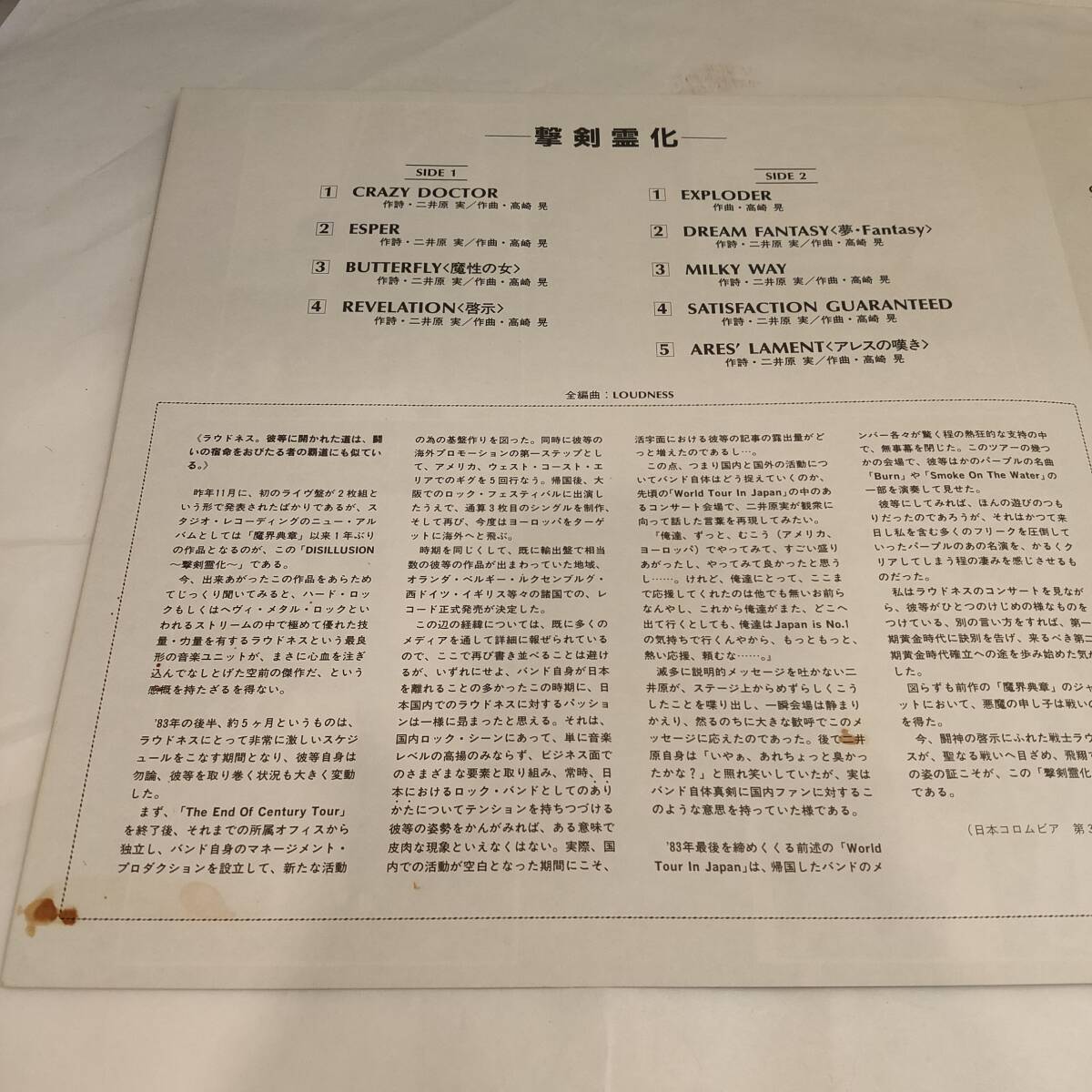 | 商品名稱 : | 092106●国内盤 LP 帯付 LOUDNESS / DISILLUSION ラウドネス / 撃剣霊化 AF-7246 レコード● |
