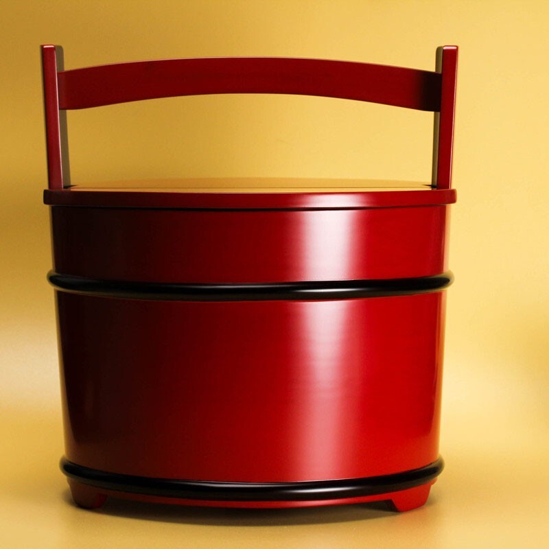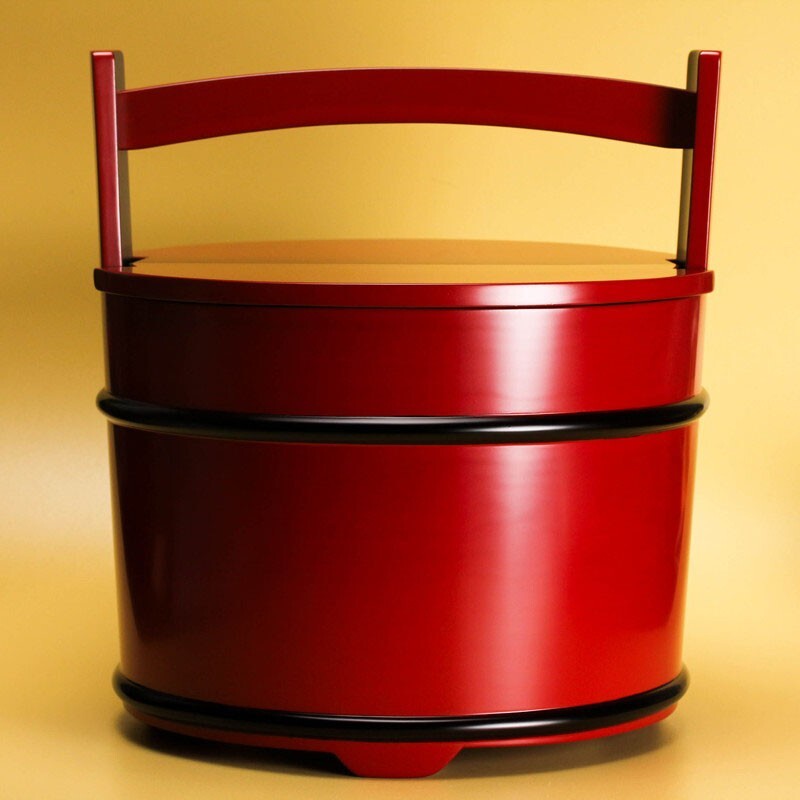 三代 川瀬表完 認得斎好写朱手桶水指 未使用と思われる美品 共箱 共布袋 栞 茶道具 本物保証