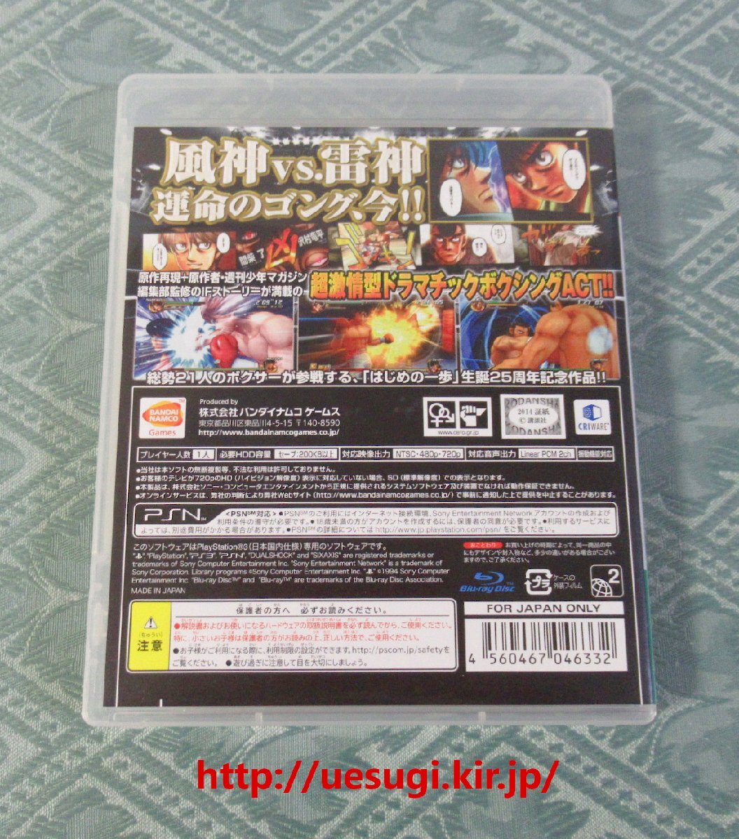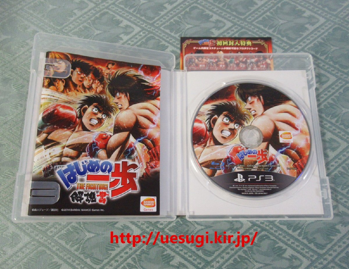 PS3「はじめの一歩 THE FIGHTING!」 商品説明 落札後はYahoo!からの通知をお読み頂きオーダーフォームへご入力お願いします。以降はメールでの取引となります。 下記説明文・注意事項・発送詳細・支払方法をお読み頂き、理解できることを入札の条件といたします。 PS3「はじめの一歩 THE FIGHTING!」となります。 状態は中古、動作確認済。盤面研磨済、擦り傷残りが見られます。 取説は裏表紙に少しヨレ、角に軽い使用感有。 プロダクトコード付属、期限切れ。ケースは細かい擦れ有。 ディスクに傷残りがあったため、通常より長めの確認を取っています。 読み込み能力の劣化した本体での動作は保証致しかねます。