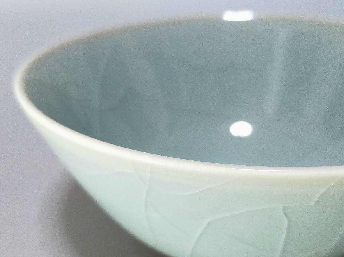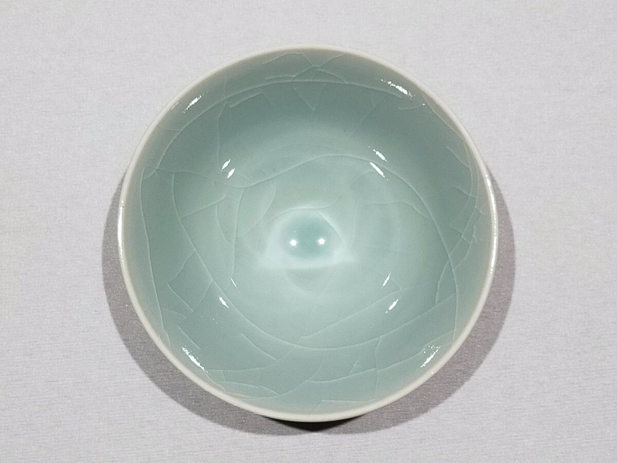 砥部焼 茶碗 伝統工芸士 酒井芳人 作 青磁 栞・共布・共箱 茶道具