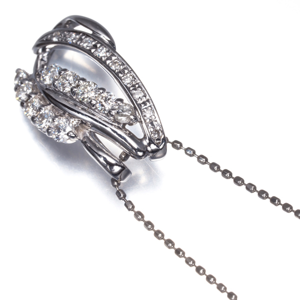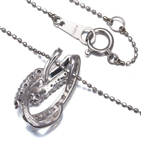 優雅なラインで演出されたオープンワークのデザインへ繊細なダイヤモンドの輝きを並べたプラチナジュエリー。艶やかなプラチナ光沢とダイヤの煌めきが美しいコントラストを胸元で演出してくれます。 |