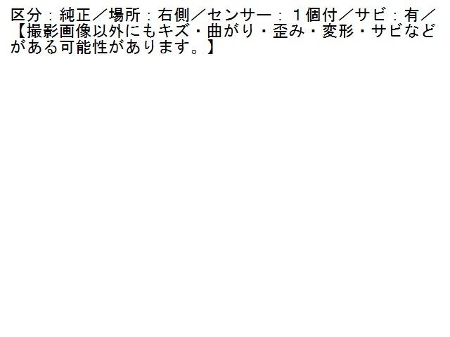 | 商品情報 | 区分:純正/場所:右側/センサー:1個付/サビ:有/【撮影画像以外にもキズ・曲がり・歪み・変形・サビなどがある可能性があります。】 | ||