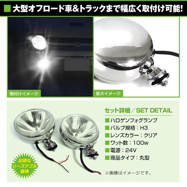 【商品説明】 ハイパワーのハロゲン球を使用した4駆などで使用可能なフォグライトです。 シルバーボディーでお車に独特の存在感を演出します。 夜間走行、オフロード、クロカンなどに有効です。 ジムニーから大型オフロード車、トラックまで幅広く取付け可能な汎用設計となっています。