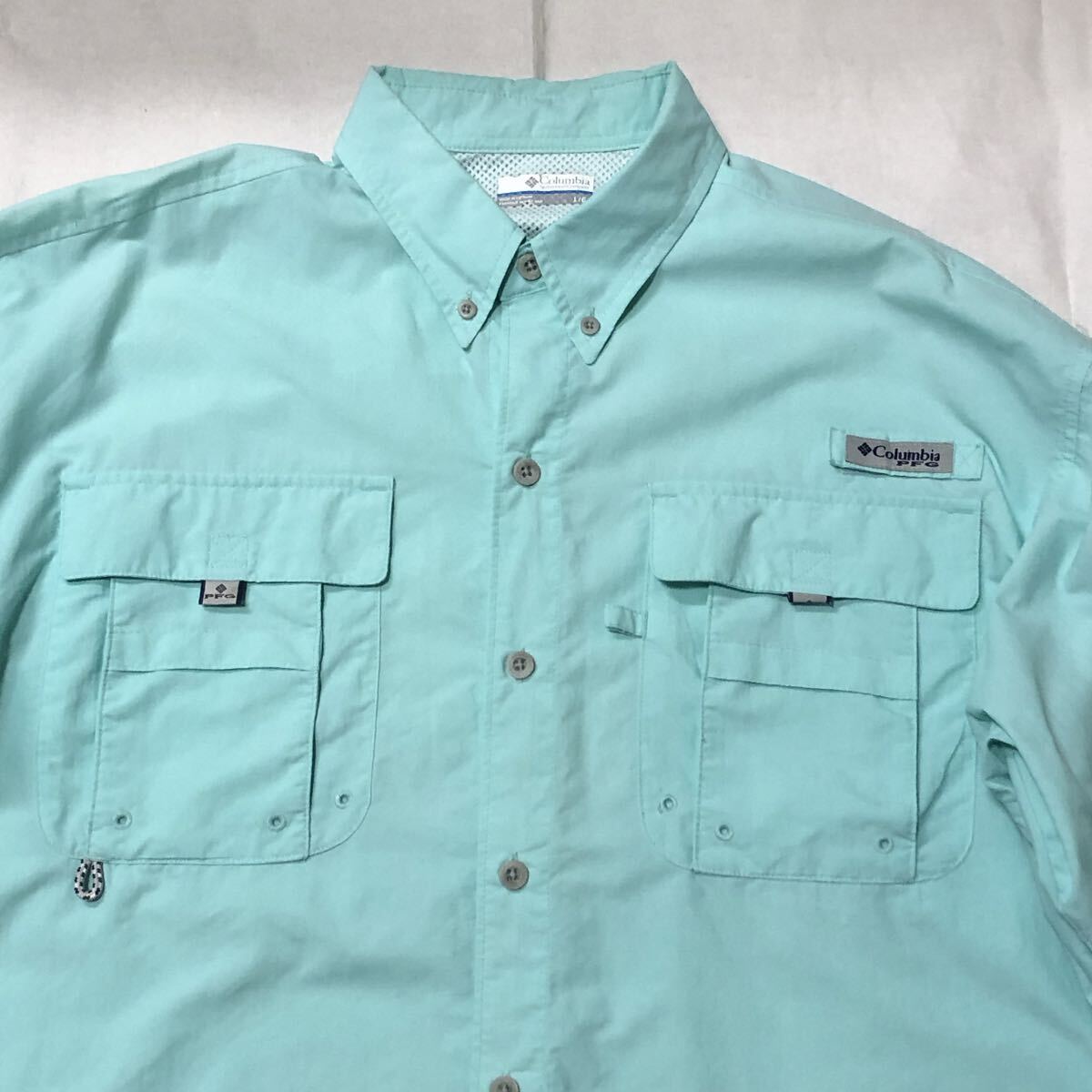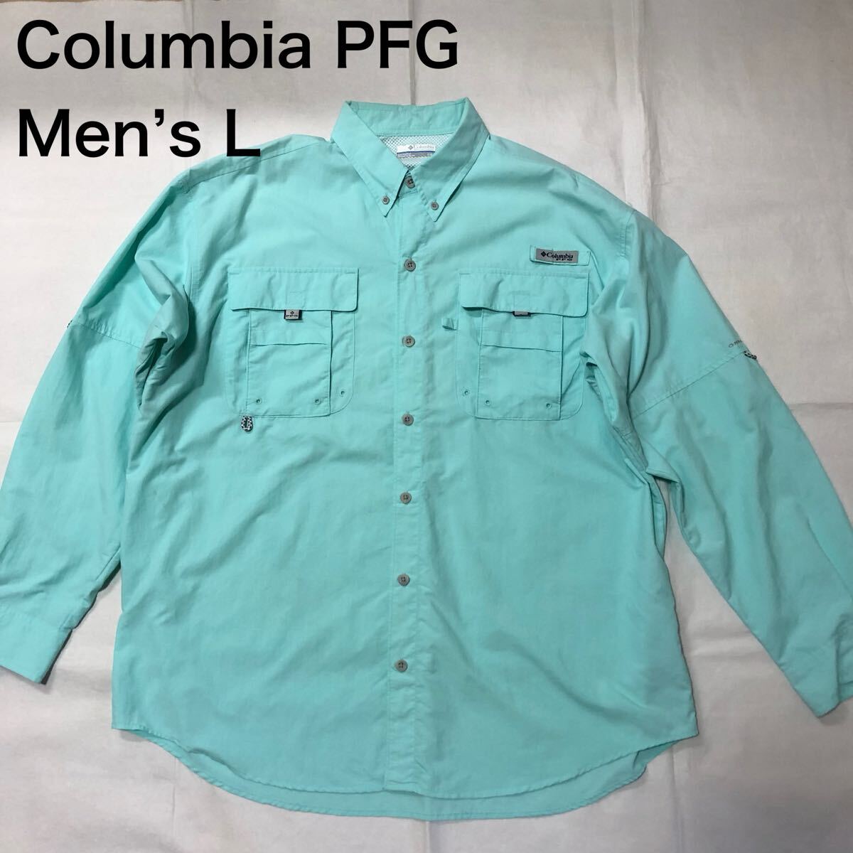 【送料無料】Columbia PFG長袖フィッシングシャツ パステル緑系 メンズLサイズ コロンビア長袖シャツ登山アウトドア