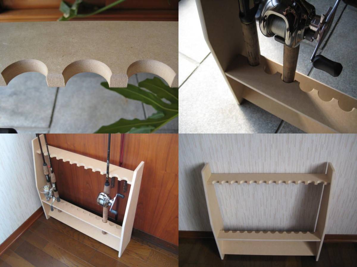 ★新品12本掛けロッドスタンド★木工職人による手作りです。面取りもしてますので、大変綺麗に仕上がっています。★サイズ・・高さ569mm、幅592mm、奥行145mm、板厚12mm、受口直径33mm★本商品は組立て式になっております。説明書を同封していますので、ドライバー1本で5分以内で組立てはできるかと思います★材質は中密度圧縮合板です★ ★組立て式だから送料が安い★ ★ロッドスタンド以外の商品は付属致しません。ロッドスタンドのみです★ |
