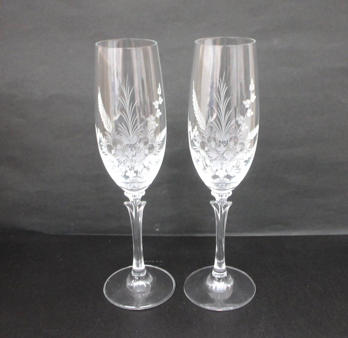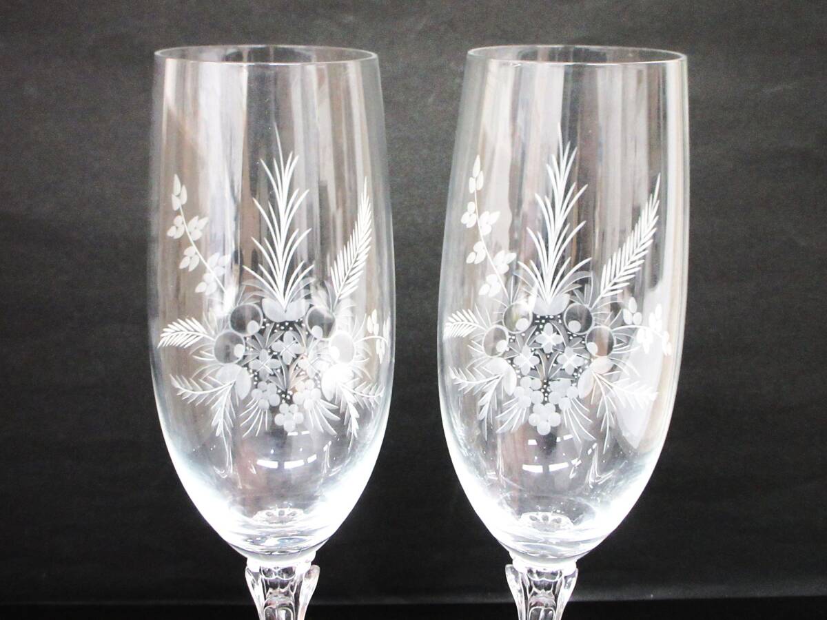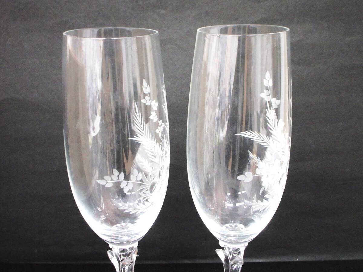 | 【10-164】シャンパングラス 2客セット ハンドエッチング | ||