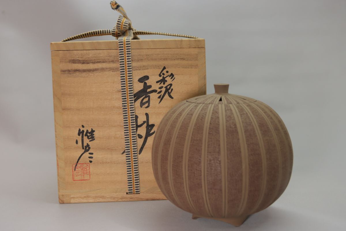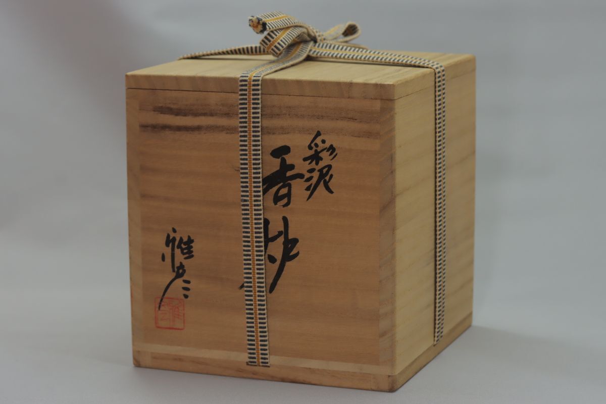 市野雅彦 彩泥 香炉 丹波焼 大雅窯 市野信水の次男共箱 共布 高さ12.5cm