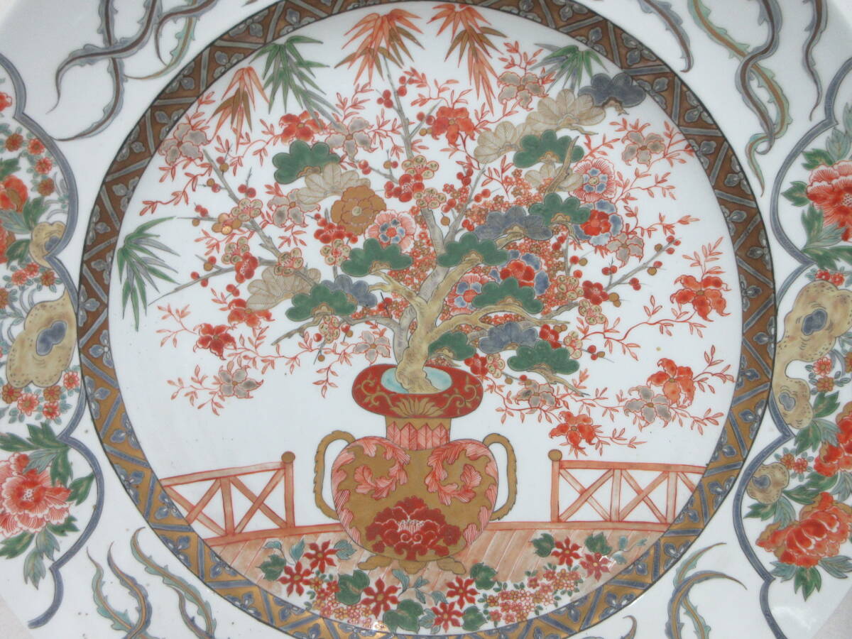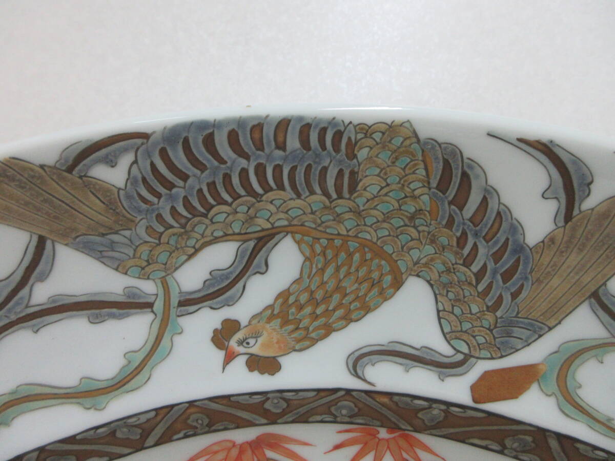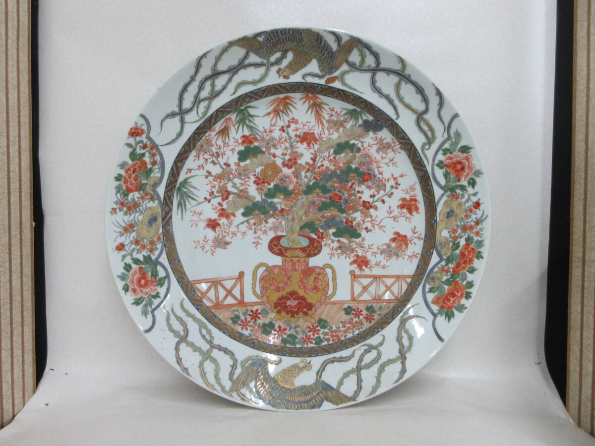 | 商品名稱 : | T2787 古伊萬里 金彩色絵鳳凰岩牡丹花壷文特大皿 2尺皿 直径61.2cm 8.7kg |