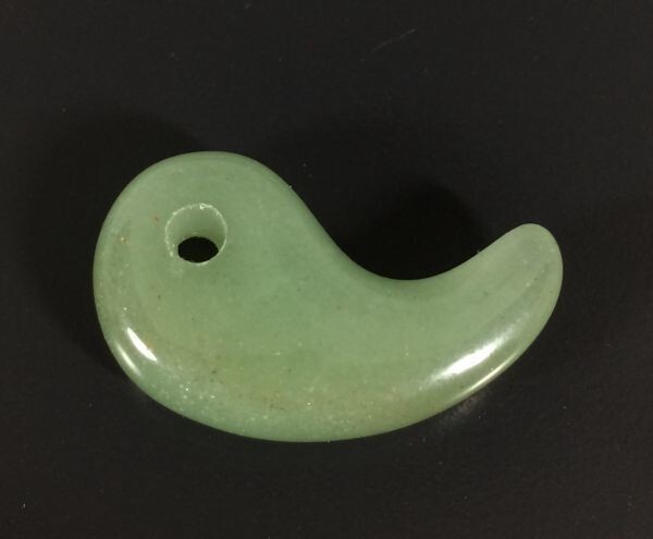 【ビルマ翡翠の勾玉】 とても美しいビルマヒスイの勾玉です。全長は約30ミリ。特に古代日本で珍重されてきた宝石であるヒスイは、富の象徴であり、仕事での成功や繁栄をもたらす石とされています。また成功に必要な人間関係の改善にも効果があるとされています。また勾玉は、日本では遥か縄文時代から神事に用いられていました。勾玉には精霊が宿り、それを身に付けるこ とで災厄から身を守ると信じられてきました。 ビルマ翡翠と勾玉の組み合わせは、成功と安定の組み合わせです。貴方の富と安全を守り、災厄を遠ざけてくれることでしょう。