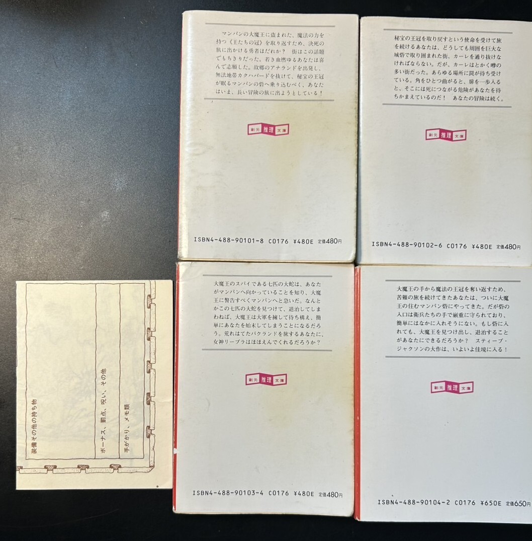 | 商品名稱 : | ソーサリー4冊セット ゲームブック 創元推理文庫 スティーブ・ジャクソン 魔法使いの丘 城砦都市カーレ 七匹の大蛇 王たちの冠 |