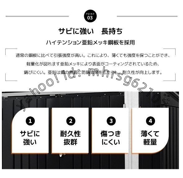 N509SA165534 【上部&両開きドアで、出し入れがとてもスムーズ!】取手を持って上に持ち上げるだけで開閉が簡単。扉が大きく開くためゴミを高く持ち上げる必要が無く、大きな袋や重量のあるゴミでも楽々に入れることができます。 【大容量でしっかり収納】たっぷり収納でき、自転車やベビーカー、交換用のタイヤやDIY道具、汚れやすいガーデン用品やアウトドア用品の収納にも。一般的な26-27インチの自転車は、ハンドル含有安全氣囊的方向盤,無法協助運送購買,若無含安全氣囊,按下確認即可下標。 を少し曲げた状態で収納することが出来ます。 【サビに強い 長持ち】ハイテンション亜鉛メッキ鋼板を採用通常の鋼板に比べて引張強度が高い。これにより、薄くても強度を保つことができ、軽量化が図れます亜鉛メッキにより表面がコーティングされているため、錆びにくい。亜鉛は鋼の表面に防錆効果をもたらし、耐久性が向上します。1.サビに強い 2.耐久性抜群 3.傷つきにくい 4.薄くて軽量 【凹凸を付け硬度が高く】外部からの強度を高める凹凸のある壁面壁面の鉄板は、凹凸を付けることにより、平たい鉄板と比べて外部からの衝撃に強くなっています。 【屋根の溝は排水に役立つ】湿気から工具を守る頑丈で耐久性があり、変形しにくい、悪天候から内部の物品を保護します 【01.ダンパーでラクラク開閉】フタにはダンパーが付いているので軽い力で開閉する事が可能です。 【02.施錠可能】屋外でも安心ハンドル含有安全氣囊的方向盤,無法協助運送購買,若無含安全氣囊,按下確認即可下標。 を上げることで開き、南京錠の設置穴有りなので防犯面も安心です。 【03.単/両開きドア可能】柔軟に開閉できる両開きドアの設計では、一方のドアにスプリングラッチが装備されています。これにより、一方のドアだけを単独で開けることができ、より高い自由度を提供します。 組立前のお願い