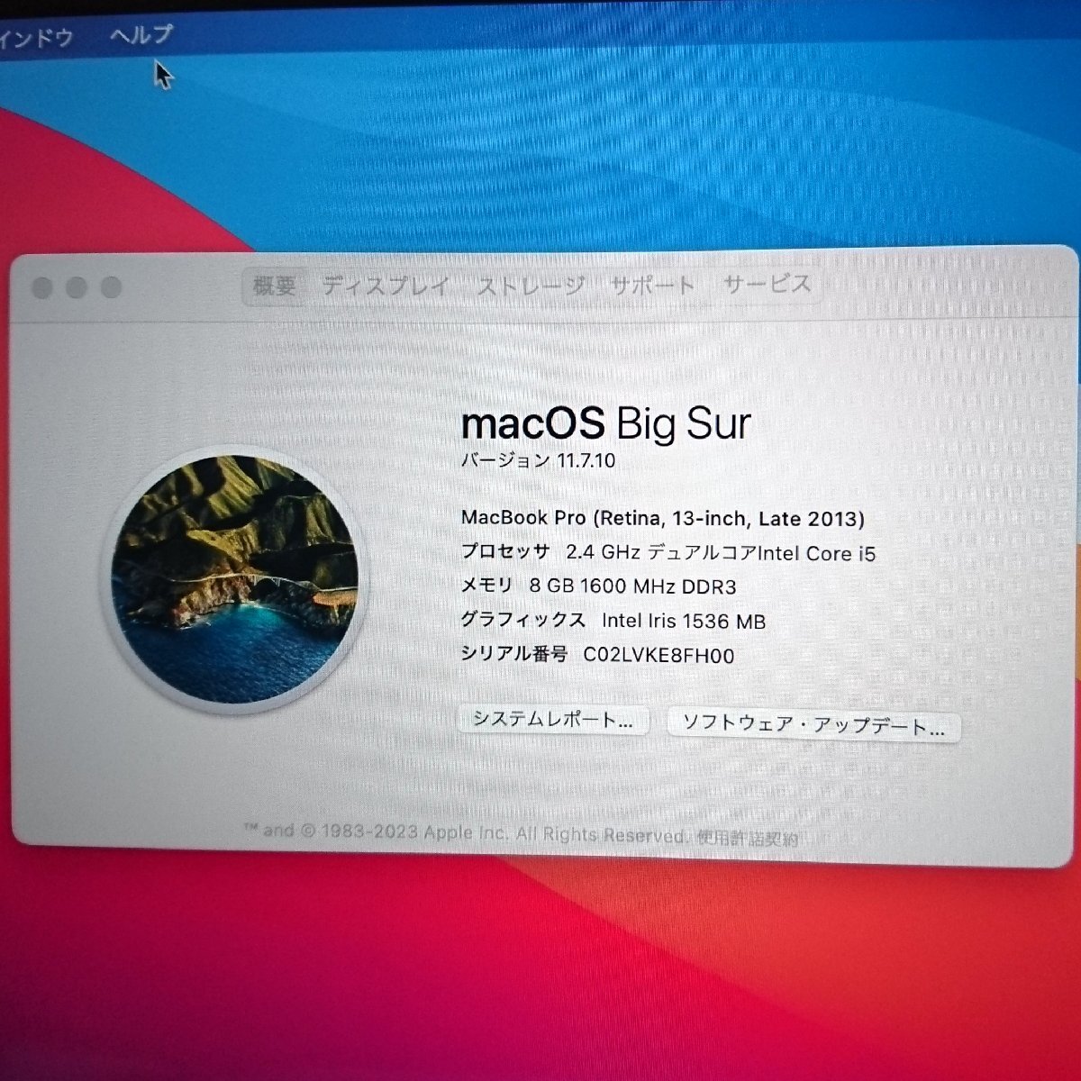| 商品名稱 : | MacBook Pro (Retina, 13-inch, Late 2013) Big Sur/Core i5[M9345] |